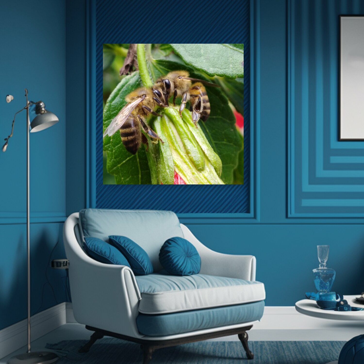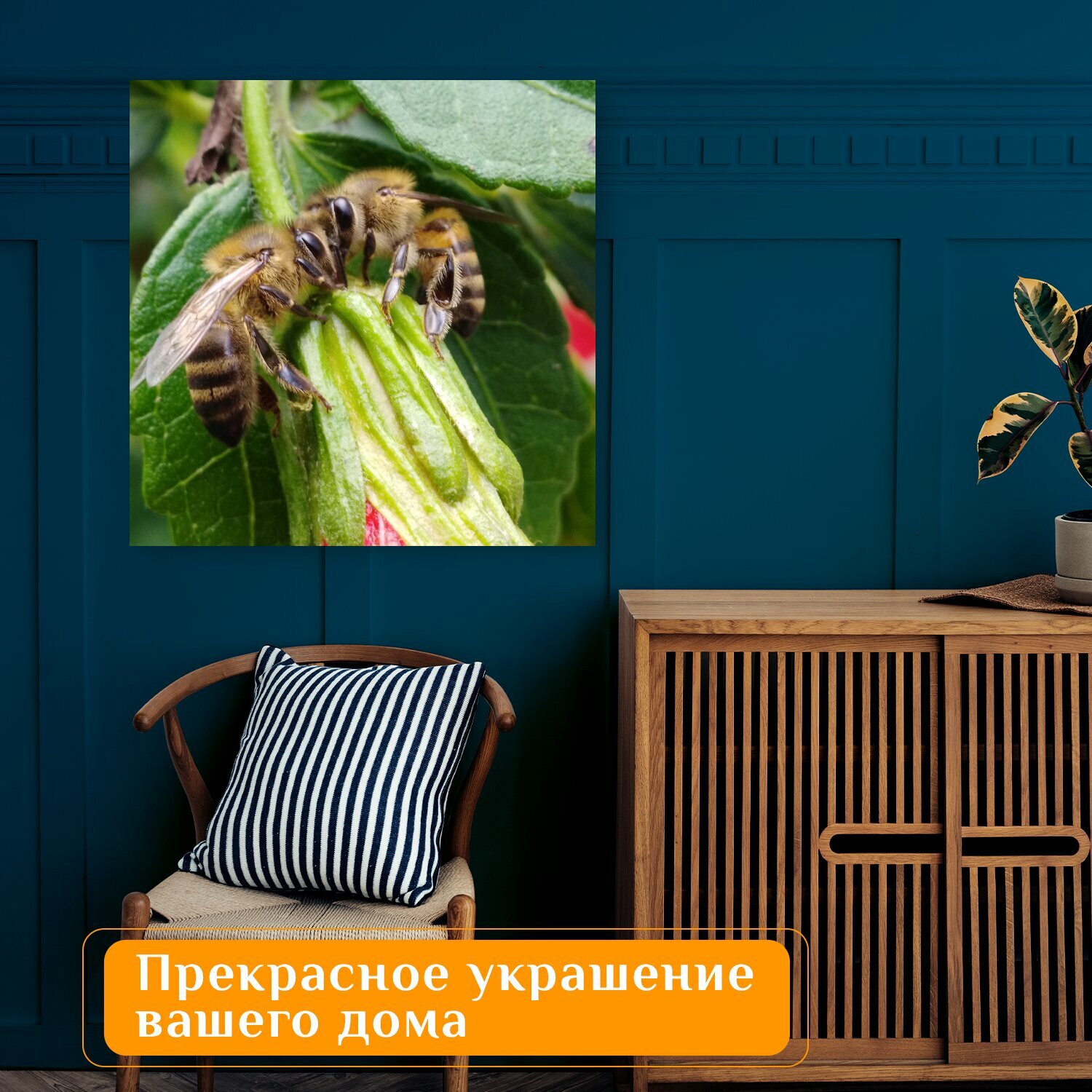 Купить Картина на холсте "Пчелы, цветы, цветочная пыльца" на подрамнике 75х75 см. для интерьера