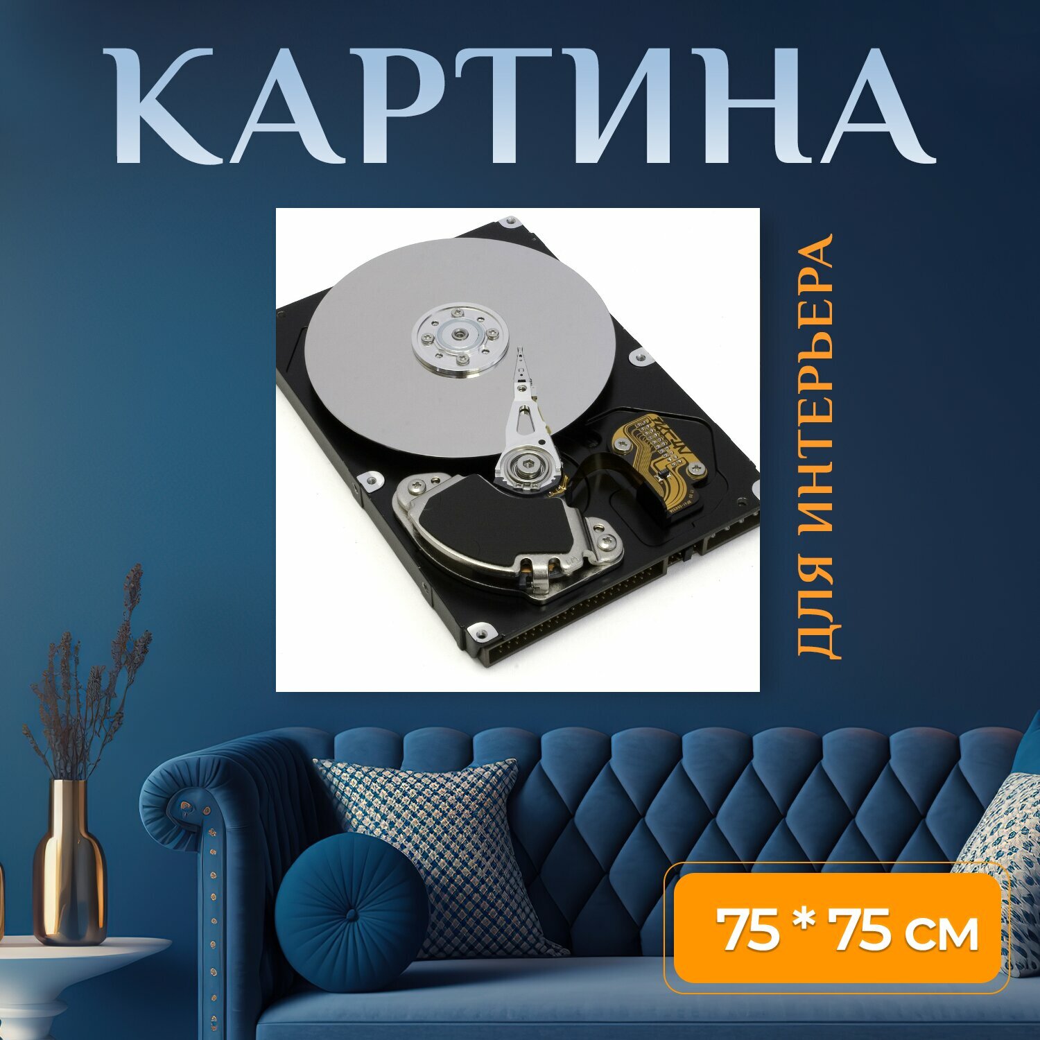 Картина на холсте "Открытый жесткий диск, видимая пластина и считывающая головка, пишу" на подрамнике 75х75 см. для интерьера интересное: