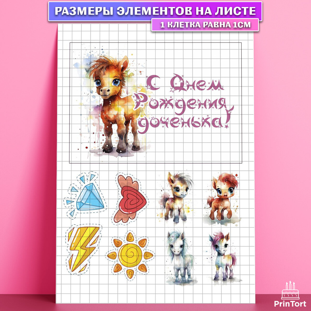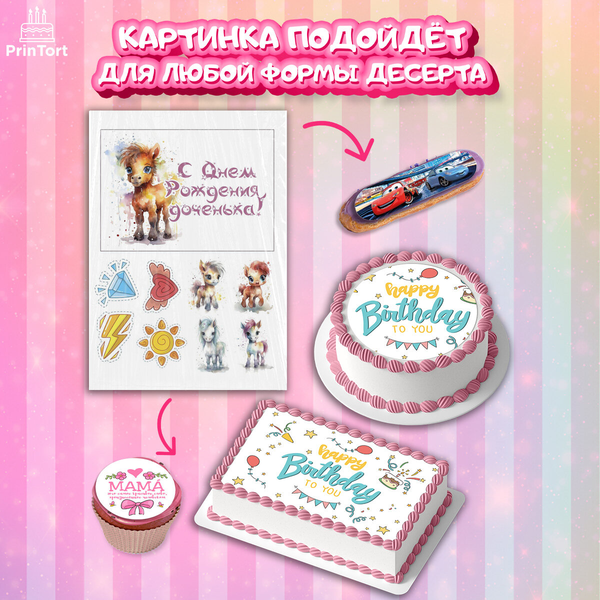 Купить Вафельная картинка для торта Пони. Украшения для торта девочке на День Рождения. Декор для выпечки PrinTortPT117059