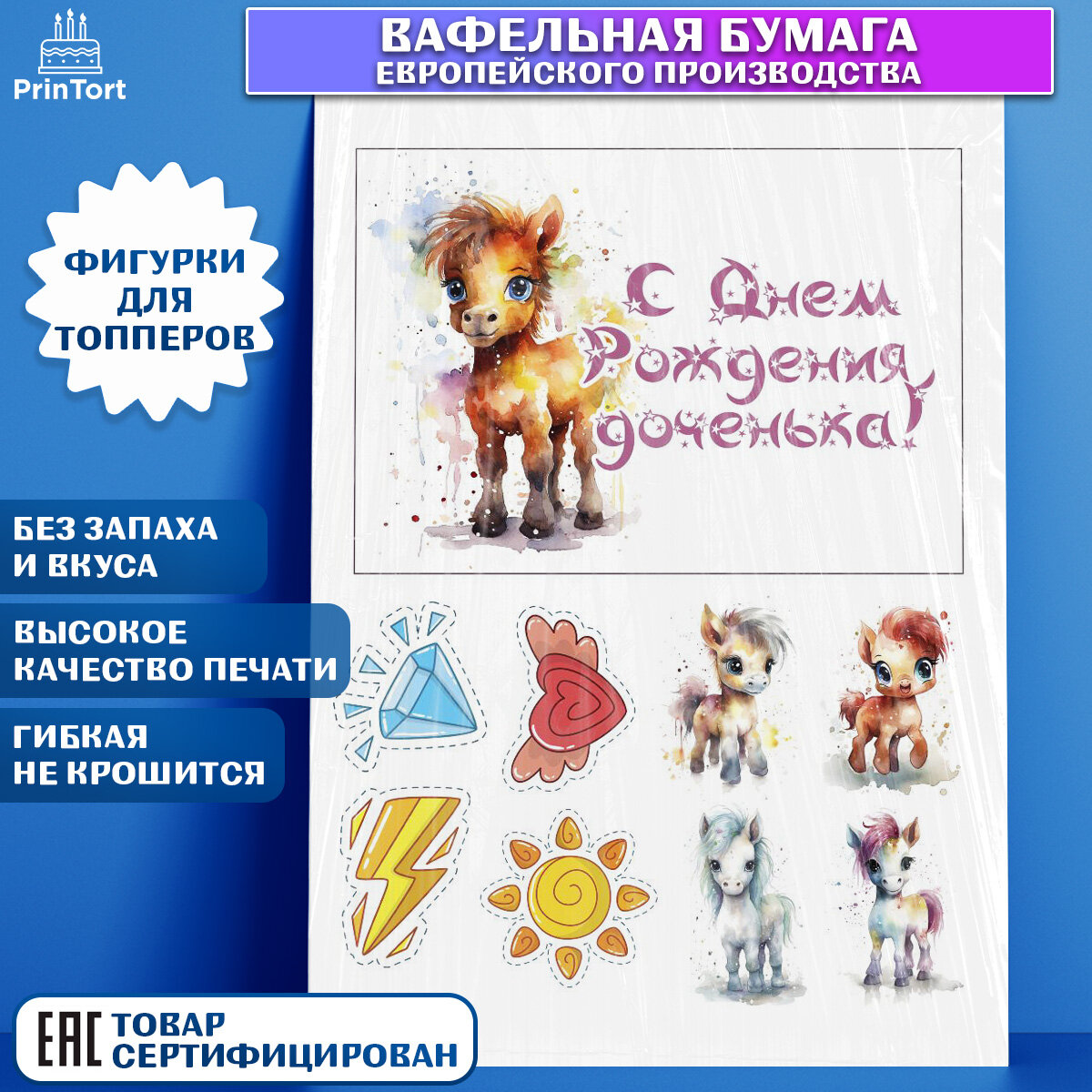 Вафельная картинка для торта Пони. Украшения для торта мальчику или девочки на День Рождения. Декор для выпечки PrinTortPT117056
