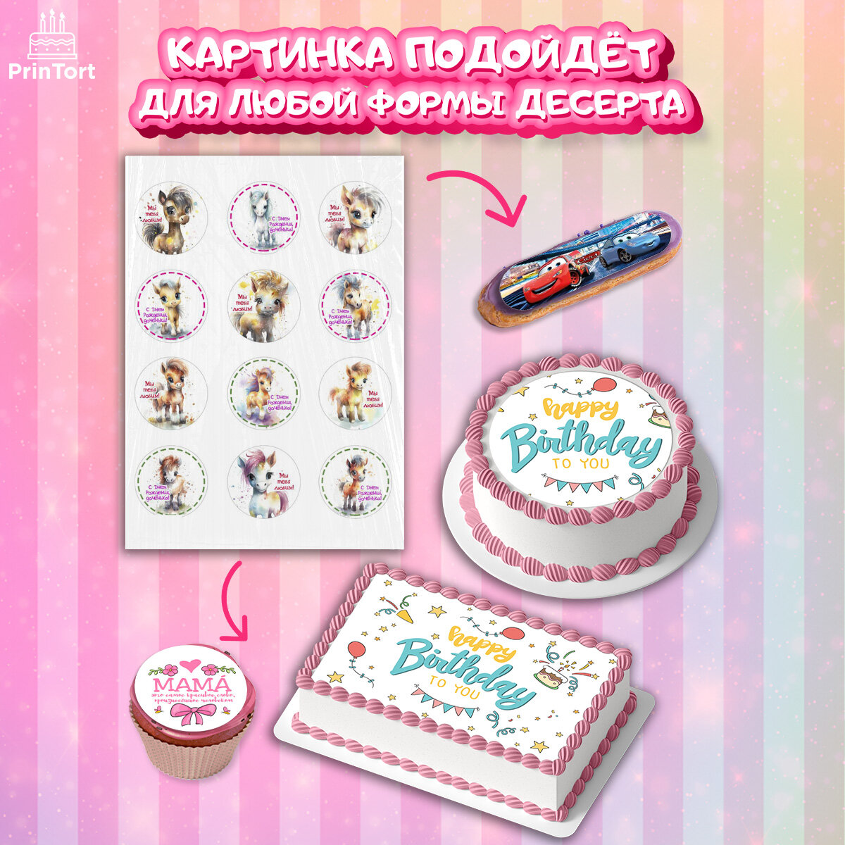 Вафельная картинка для торта Пони. Украшения для торта мальчику или девочки на День Рождения. Декор для выпечки PrinTortPT117056