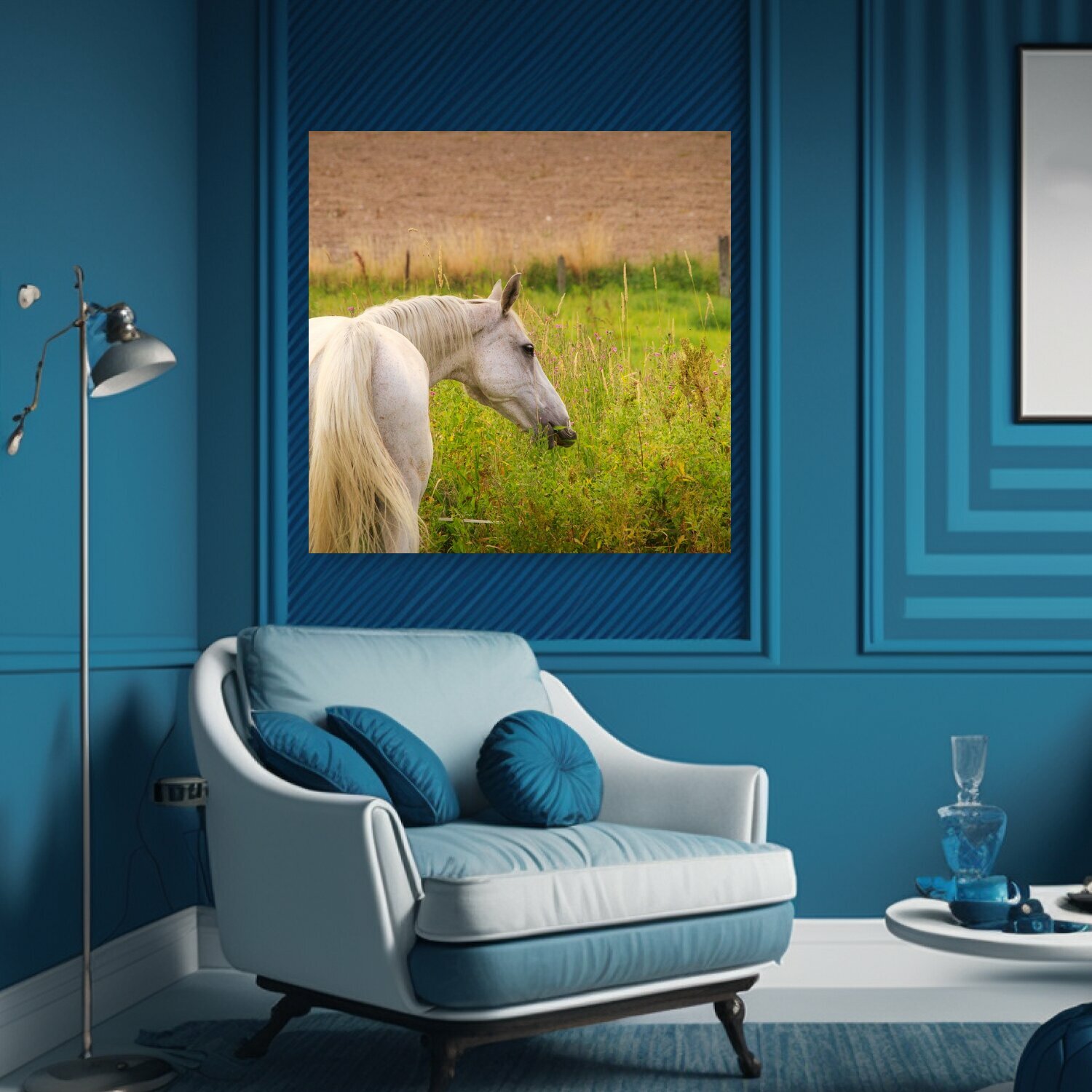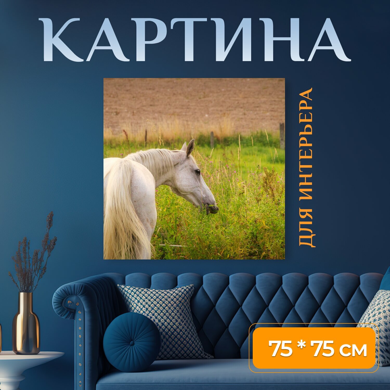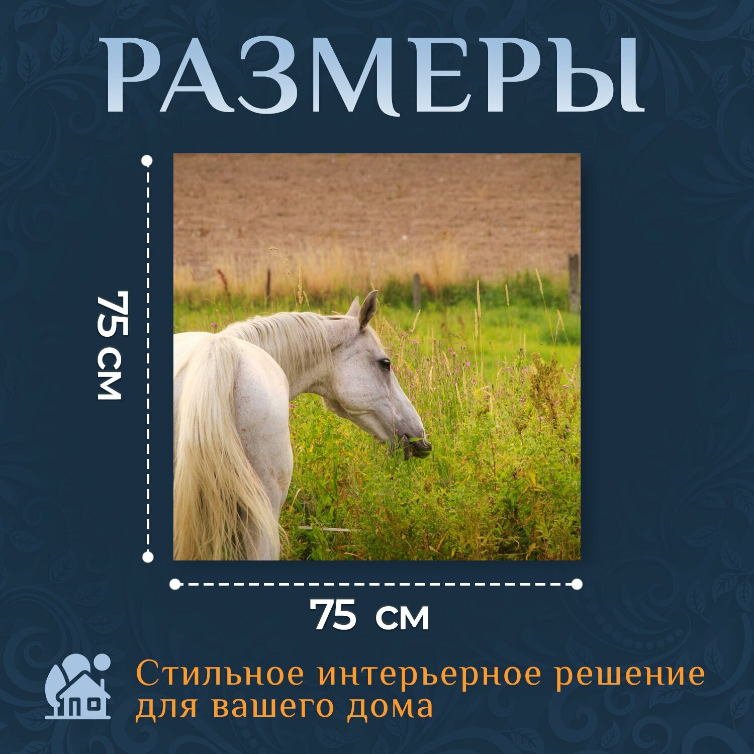 Картина на холсте "Лошадь, плесень, луг" на подрамнике 75х75 см. для интерьера интересное: