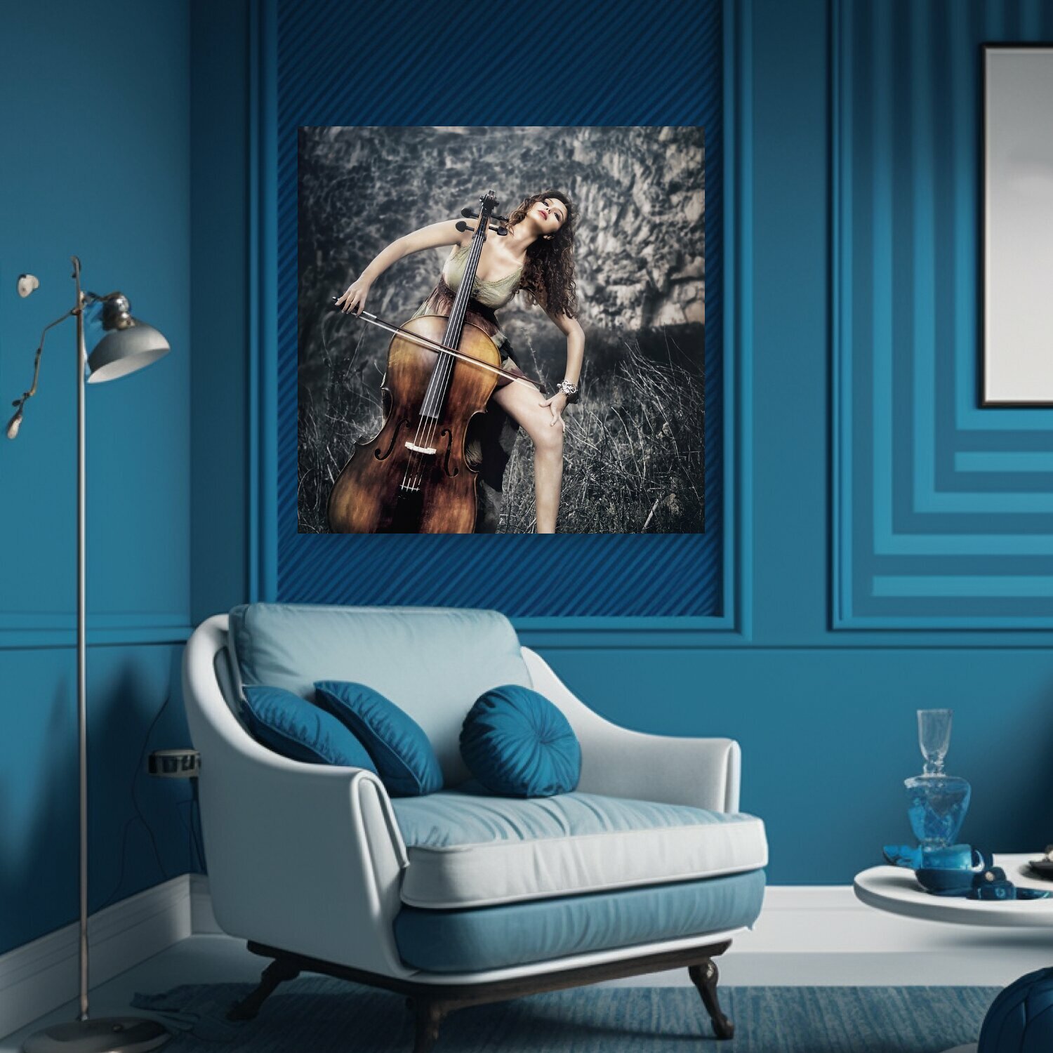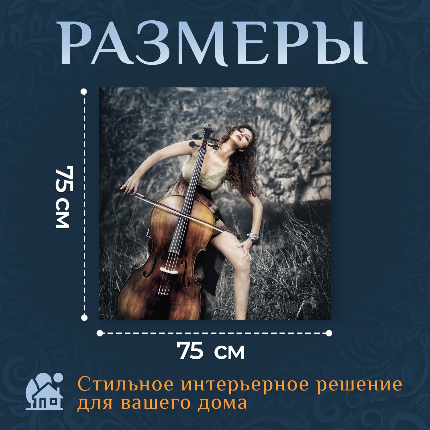 Купить Картина на холсте "Портрет, девушка, виолончели" на подрамнике 75х75 см. для интерьера
