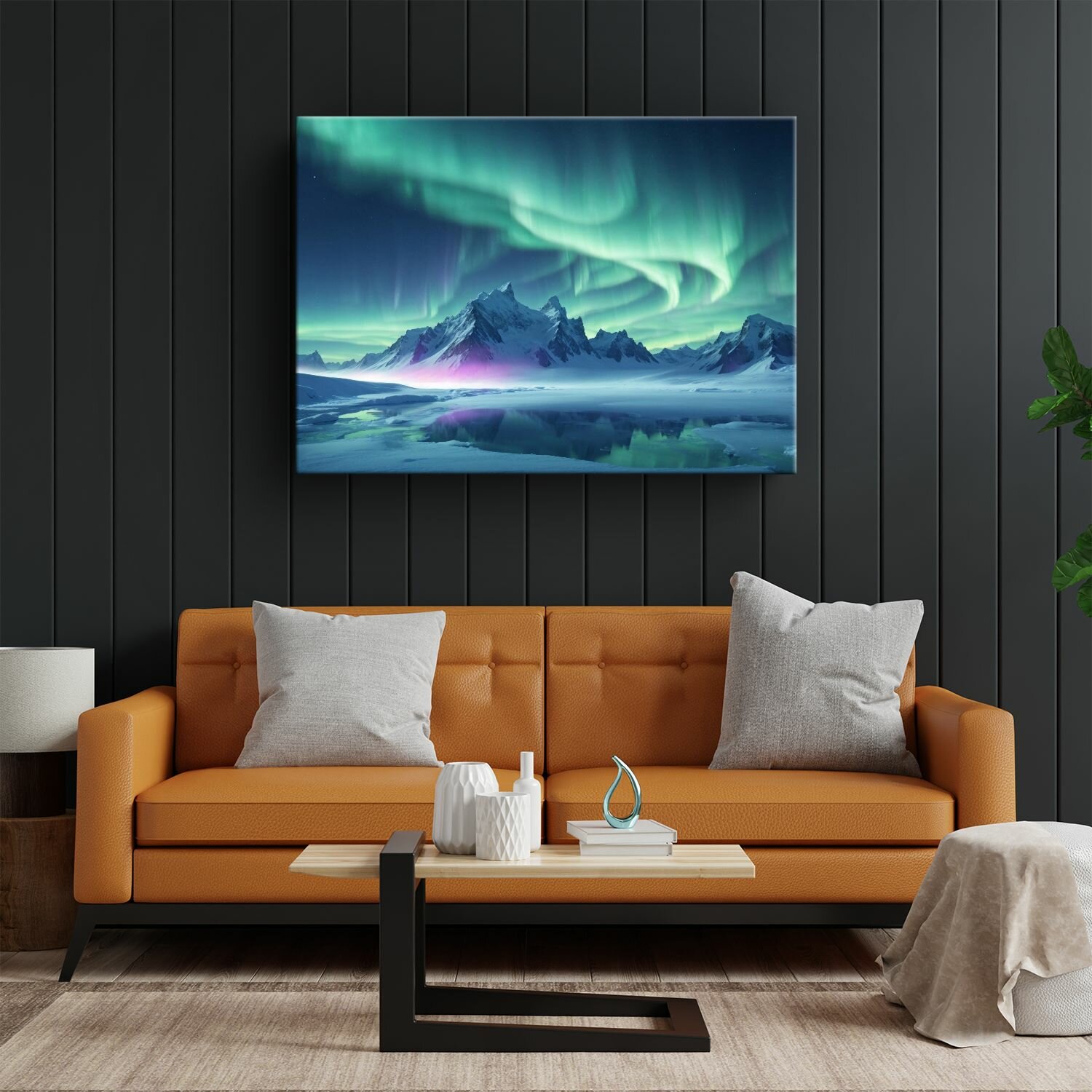 Купить Картина на холсте (Северное сияние) 50x70 см. Интерьерная, на стену.
