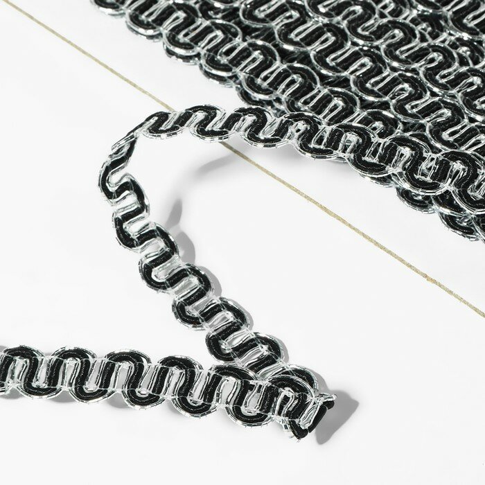 Тесьма декоративная Волна, 10 мм, 10 ± 1 м, цвет серебряный/чeрный 2 шт интересное: