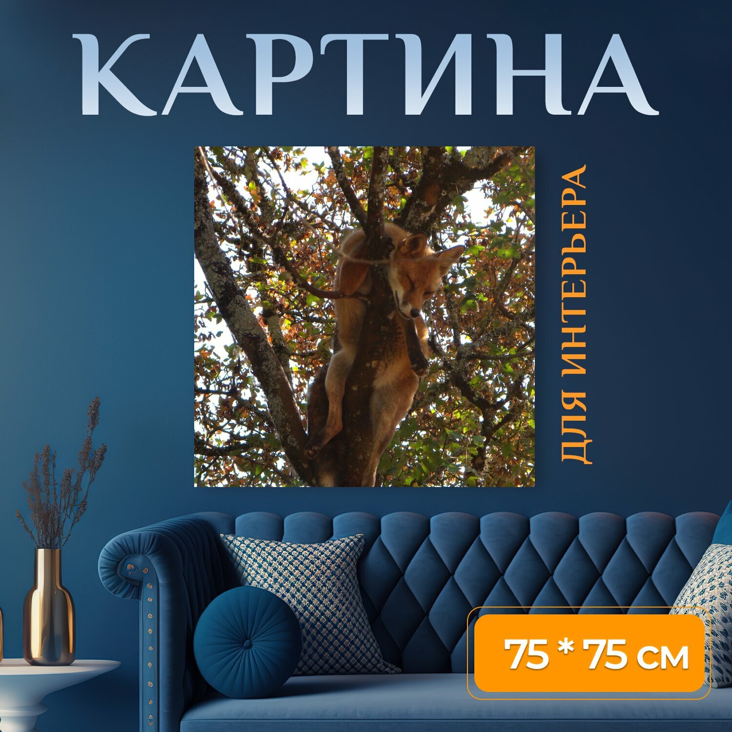Картина на холсте "Фокс, нпд, дерево" на подрамнике 75х75 см. для интерьера интересное:
