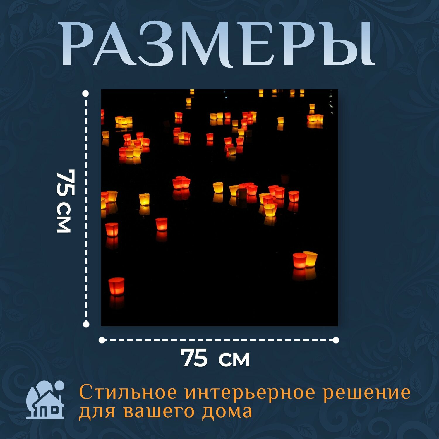 Картина на холсте "Огни, свечи, свечи плавающие" на подрамнике 75х75 см. для интерьера интересное:
