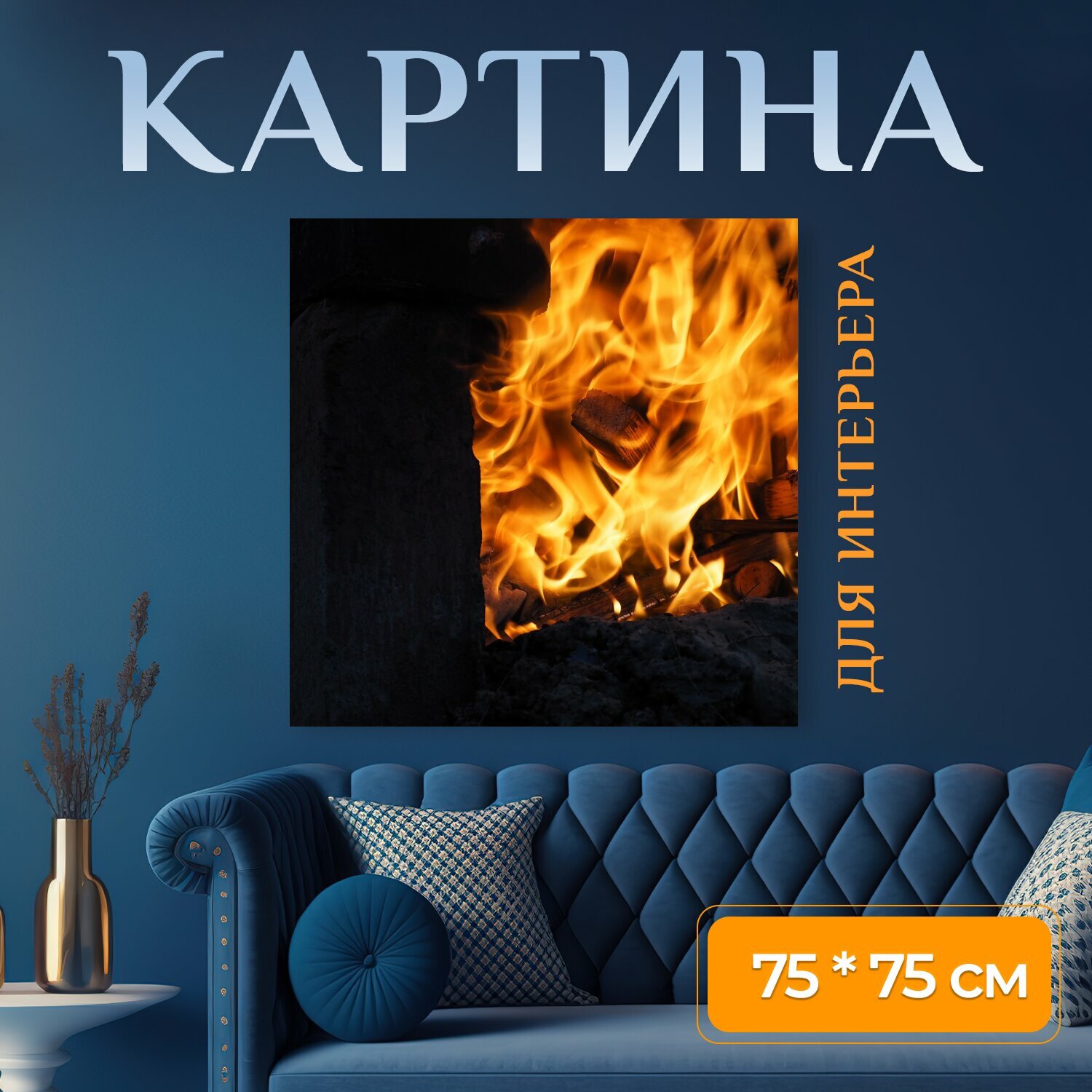 Купить Картина на холсте "Пожар, пламя, древесина" на подрамнике 75х75 см. для интерьера