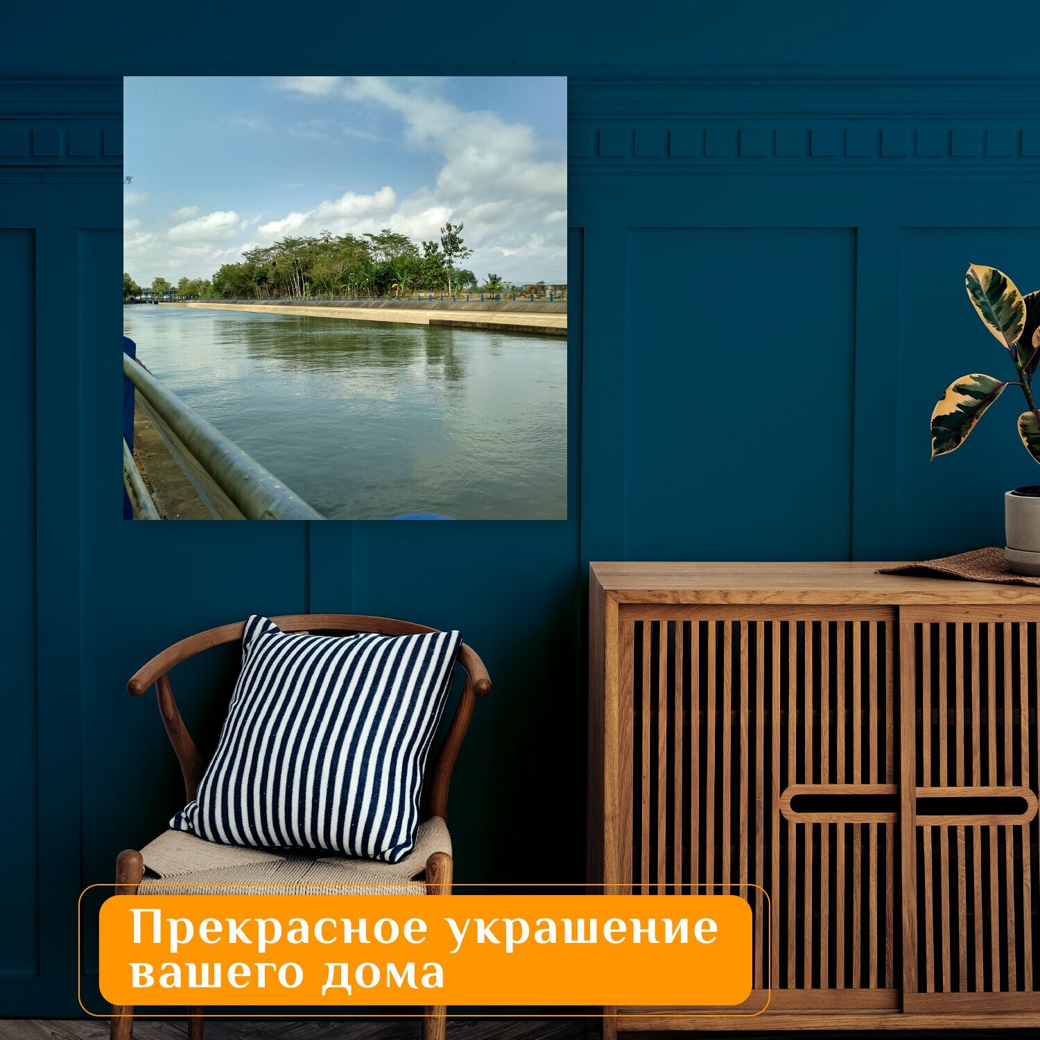 Картина на холсте "Река, синий, зеленый" на подрамнике 75х75 см. для интерьера интересное: