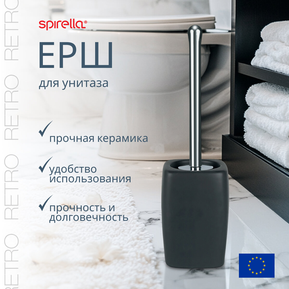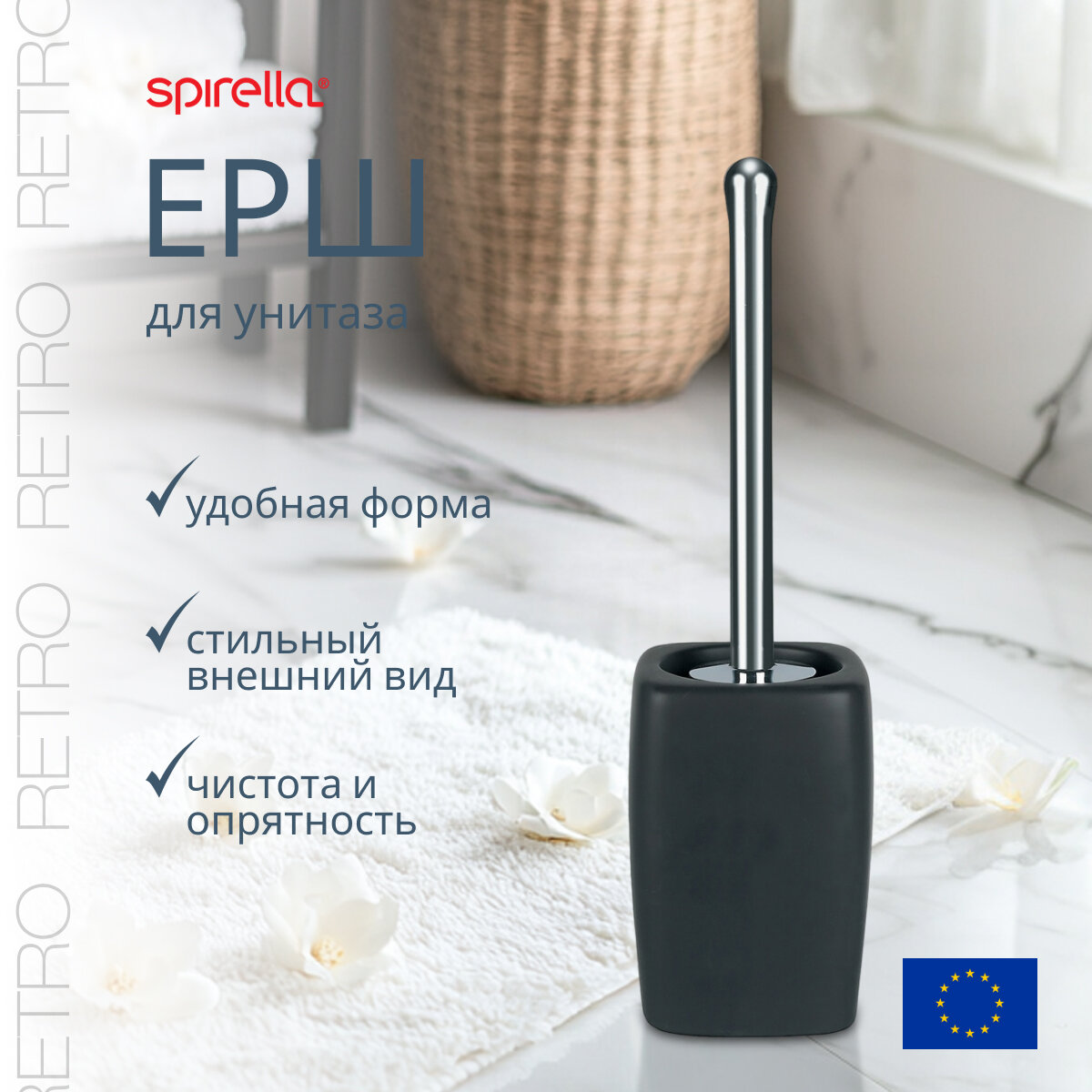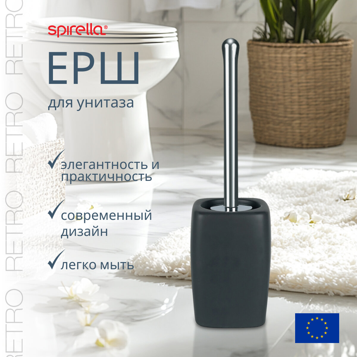 Ершик для туалета Spirella Retro, керамика, цвет черный интересное: