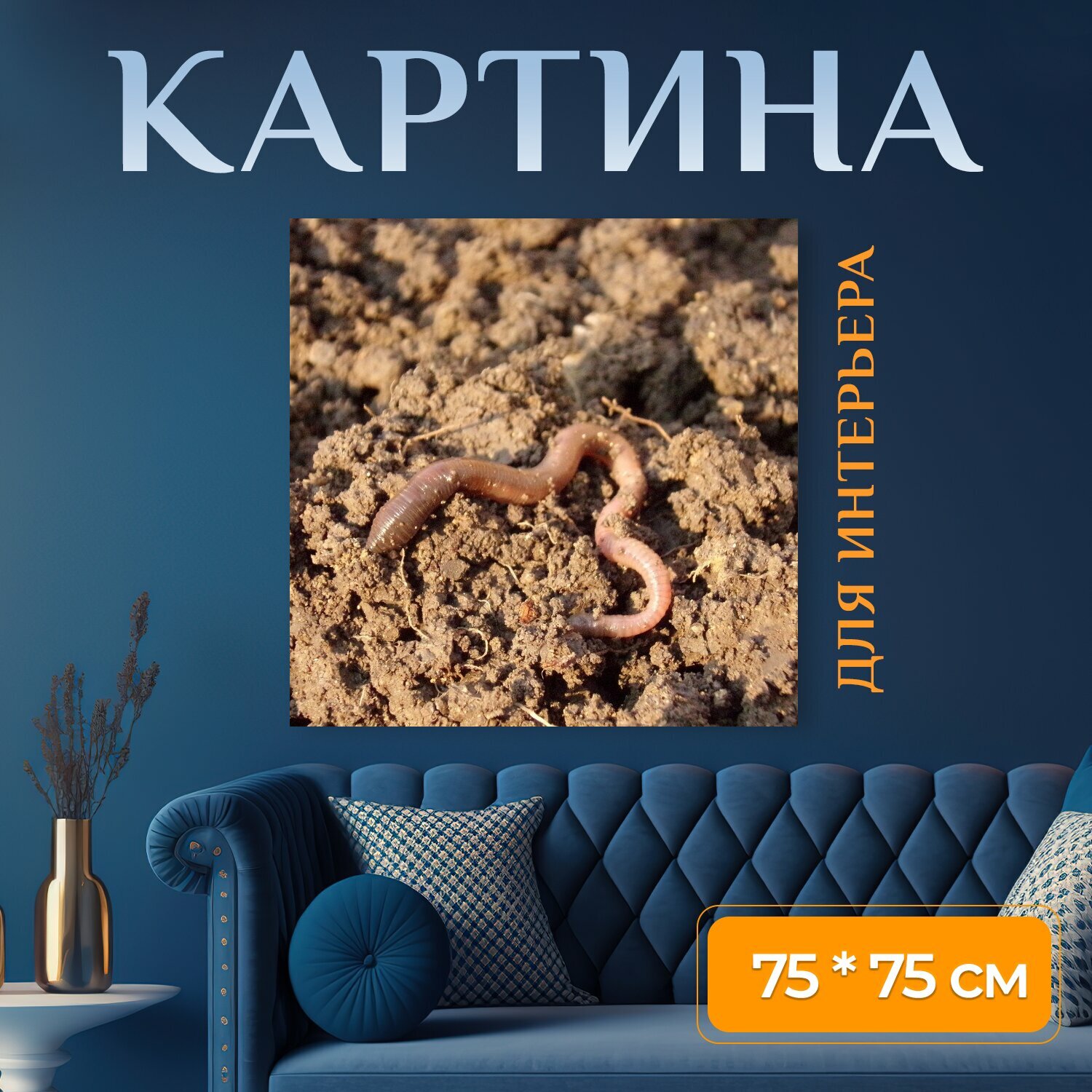 Купить Картина на холсте "Дождевой червь, пачкаться, грязь" на подрамнике 75х75 см. для интерьера