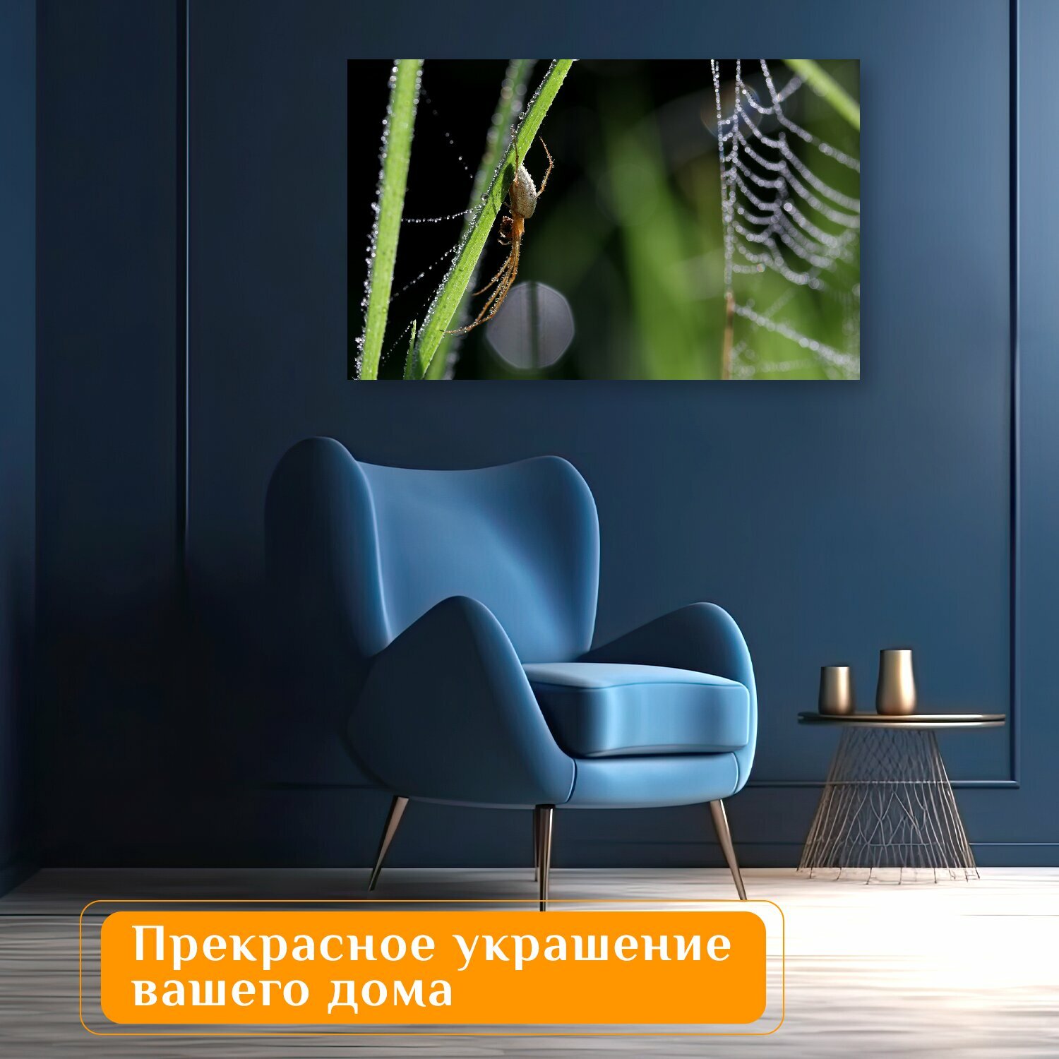 Картина на холсте "Паук, мокрый, паутина" на подрамнике 120х75 см. для интерьера интересное: