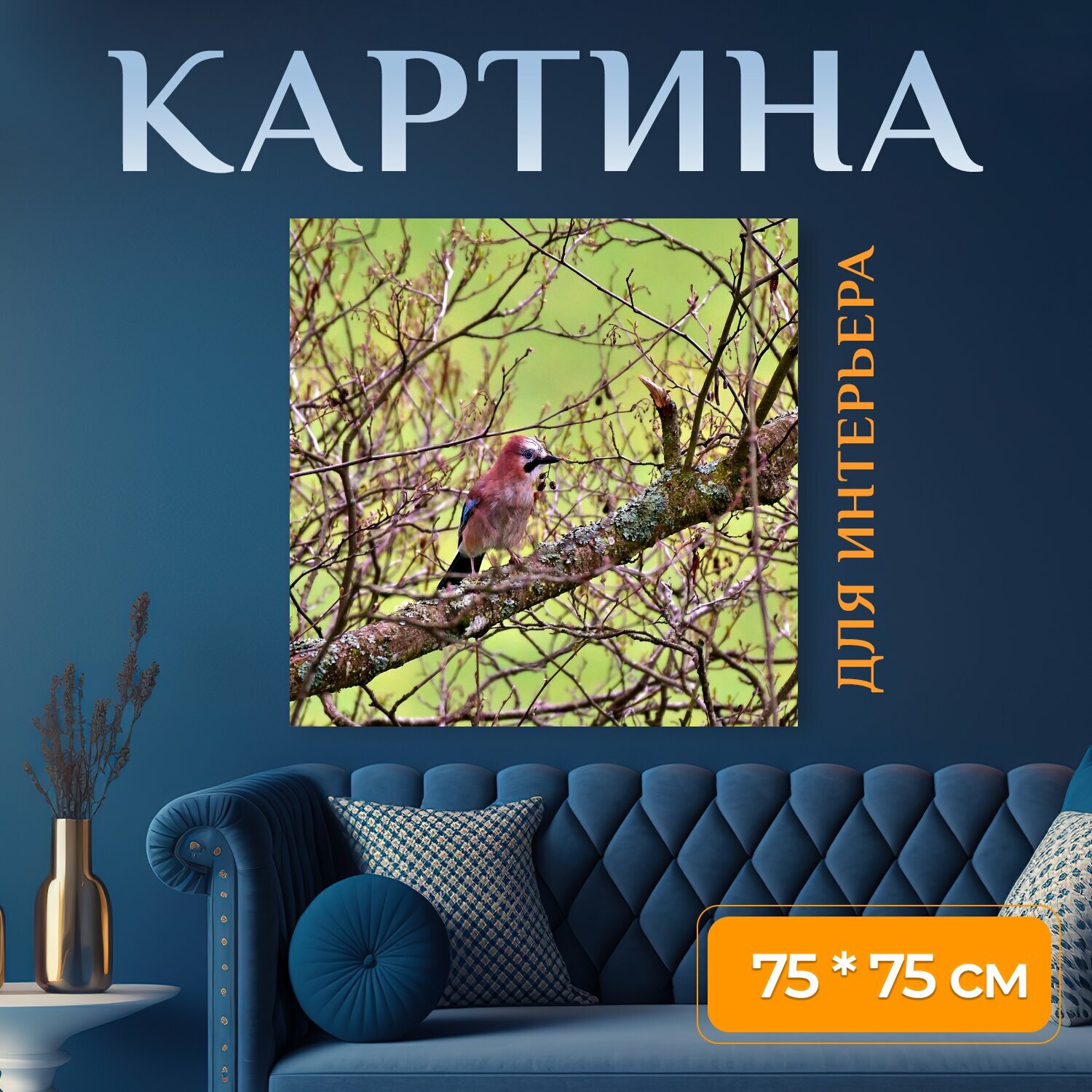 Картина на холсте "Джей, птица, сойка" на подрамнике 75х75 см. для интерьера интересное: