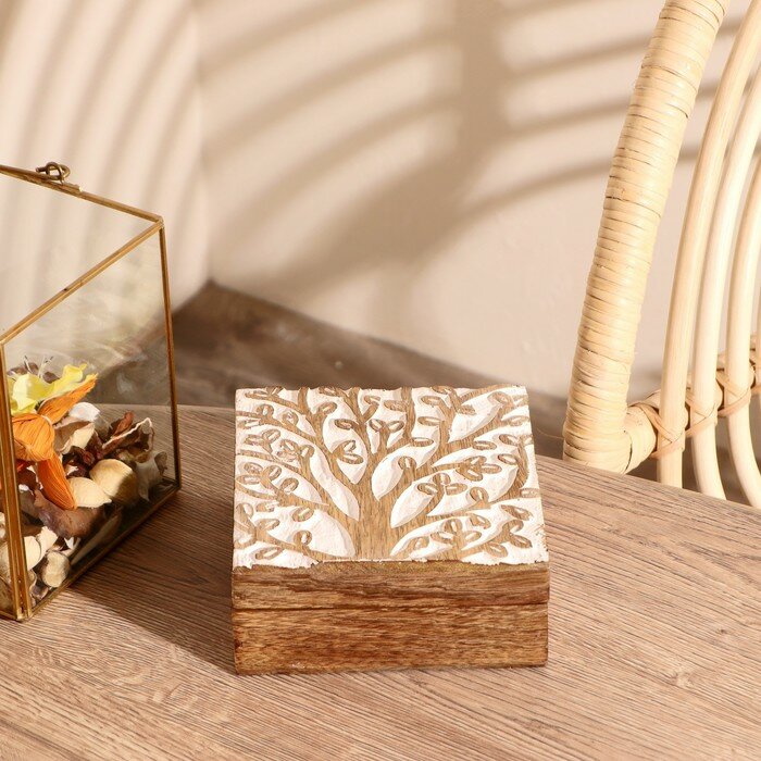 Шкатулка "Цветущее дерево" дерево 14х14х6 см интересное: