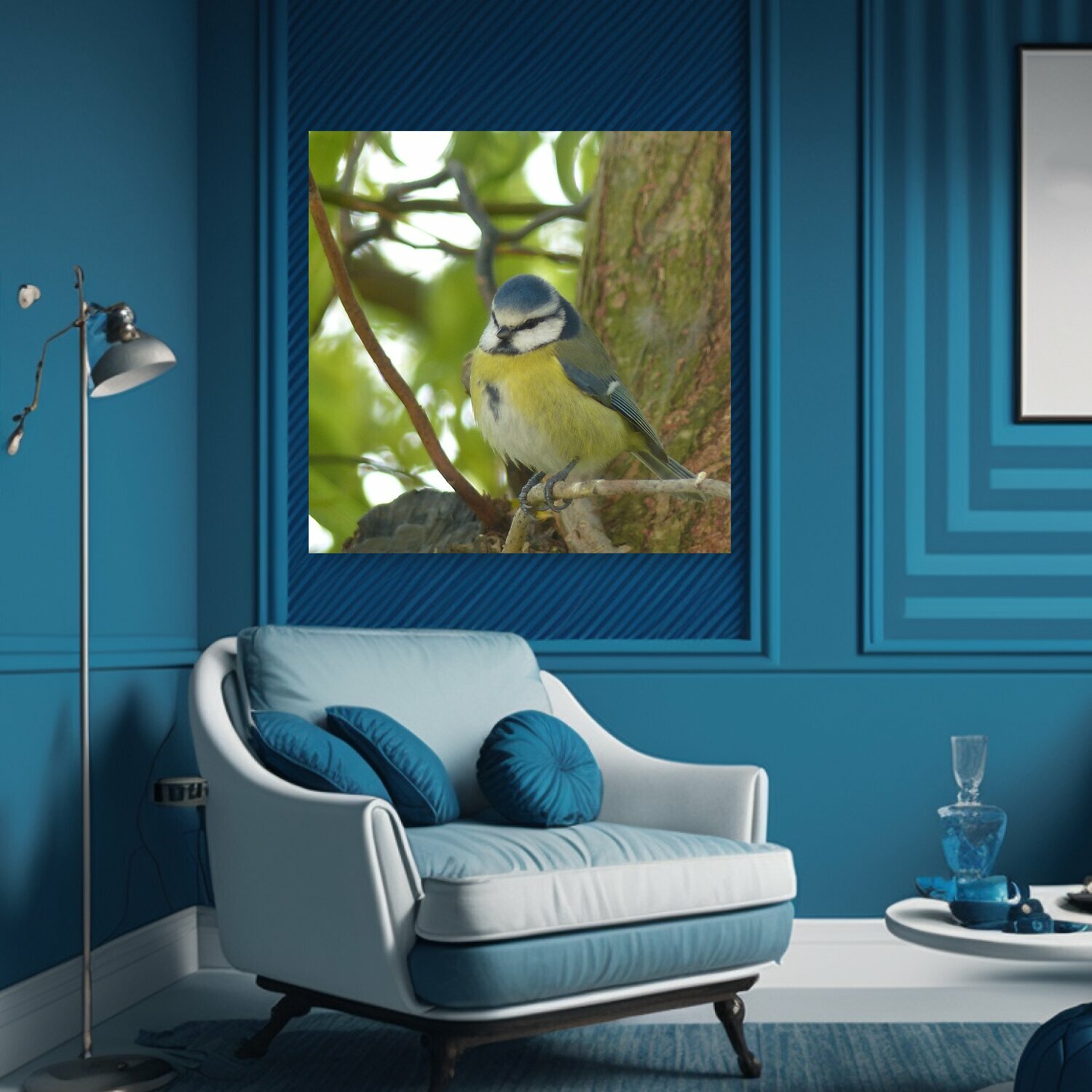 Картина на холсте "Голубая синица, птица, орнитология" на подрамнике 75х75 см. для интерьера интересное: