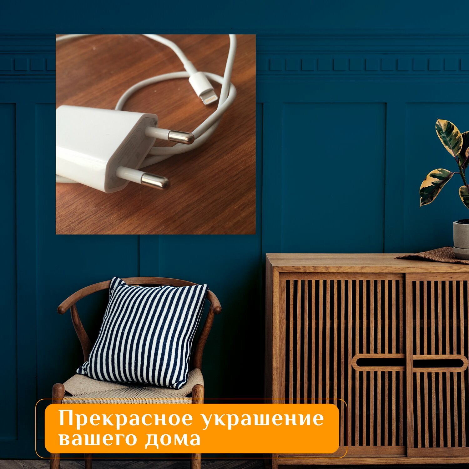 Картина на холсте "Кабель молнии, зарядное устройство, кабель" на подрамнике 75х75 см. для интерьера интересное: