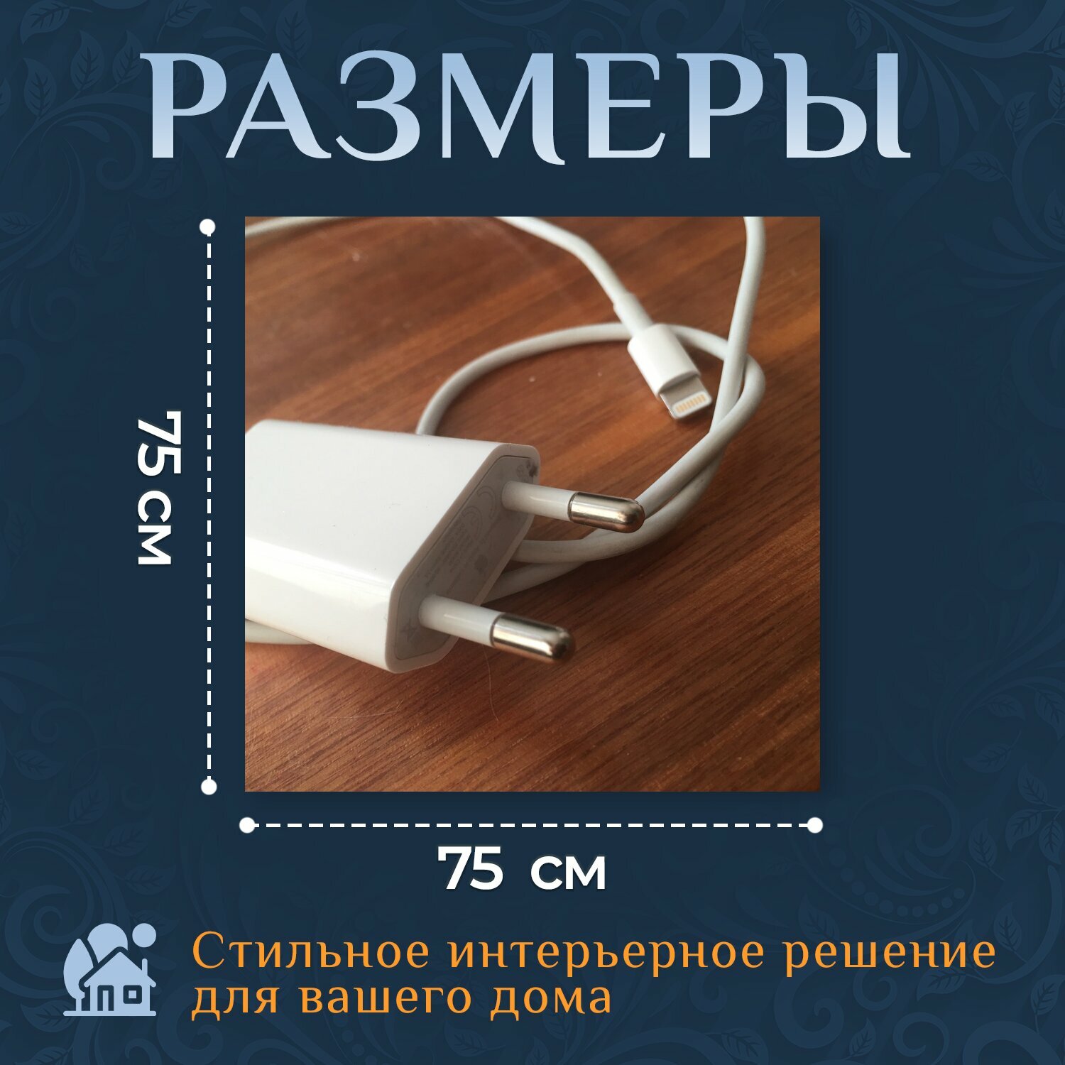 Купить Картина на холсте "Кабель молнии, зарядное устройство, кабель" на подрамнике 75х75 см. для интерьера