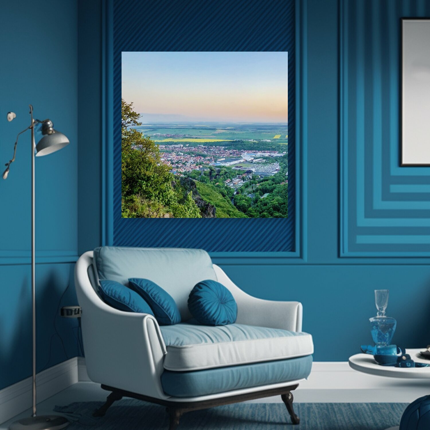 Купить Картина на холсте "Горы, цветок, деревья" на подрамнике 75х75 см. для интерьера