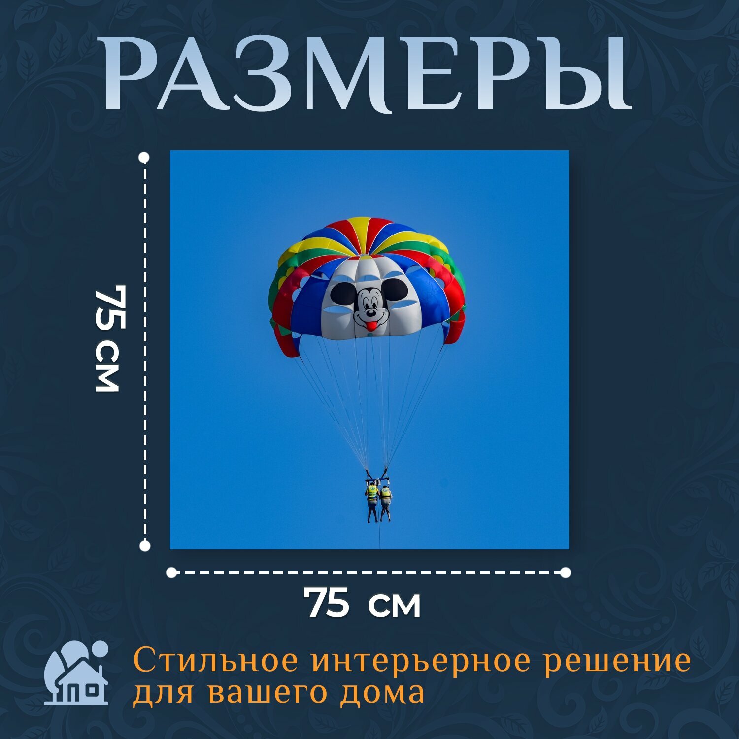 Картина на холсте "Парашют, парапланеризм, свобода" на подрамнике 75х75 см. для интерьера интересное:
