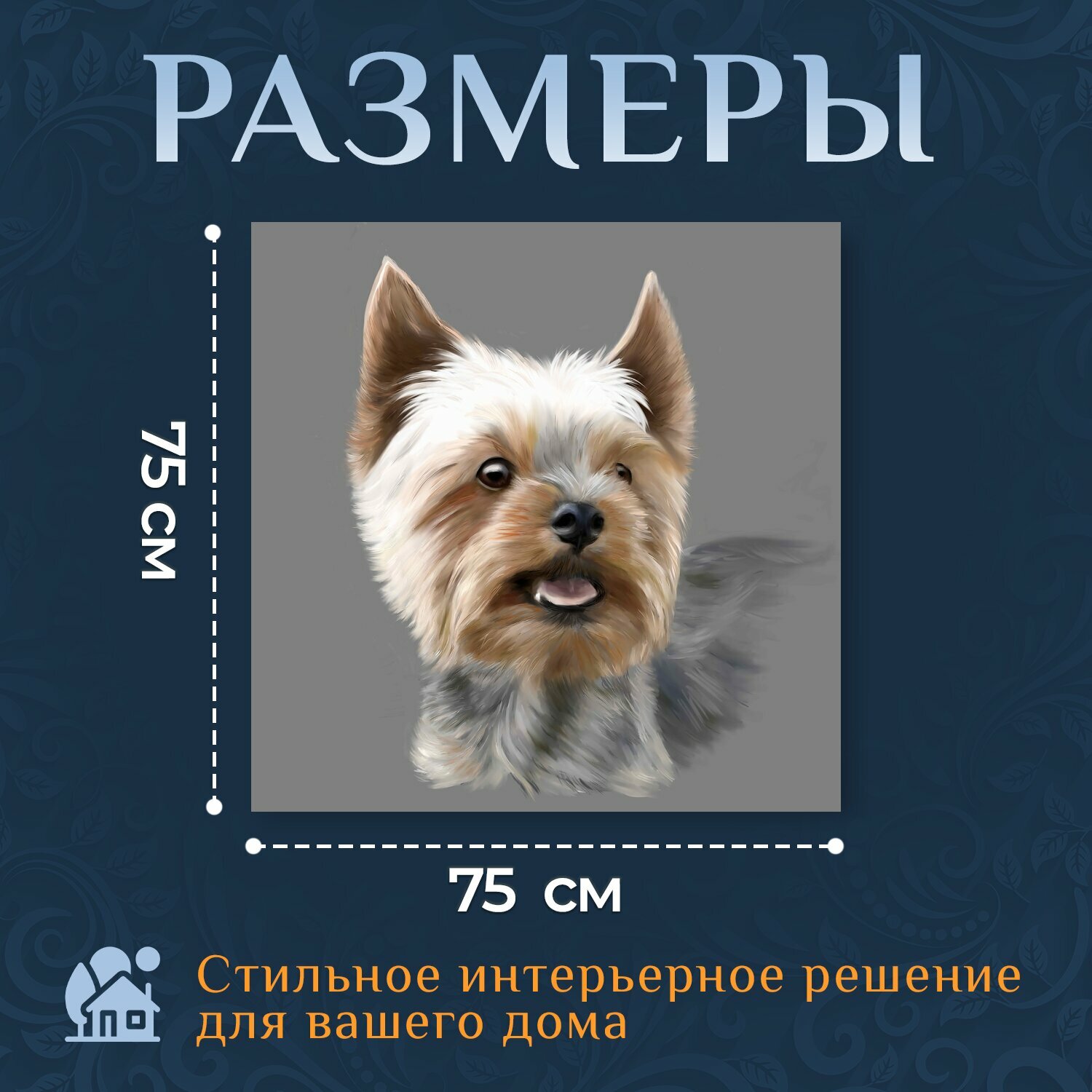 Картина на холсте "Йоркширский терьер, терьер, собака" на подрамнике 75х75 см. для интерьера интересное: