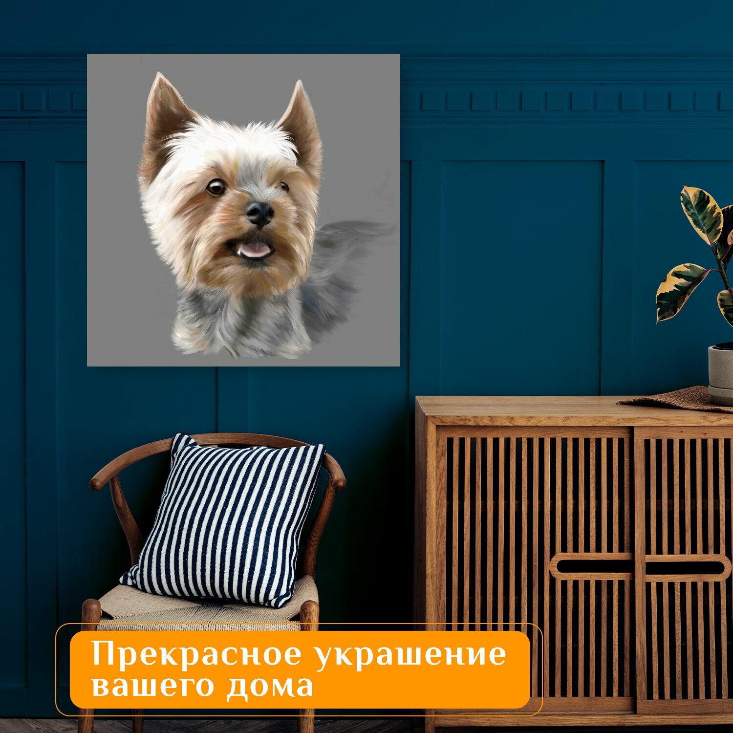 Купить Картина на холсте "Йоркширский терьер, терьер, собака" на подрамнике 75х75 см. для интерьера