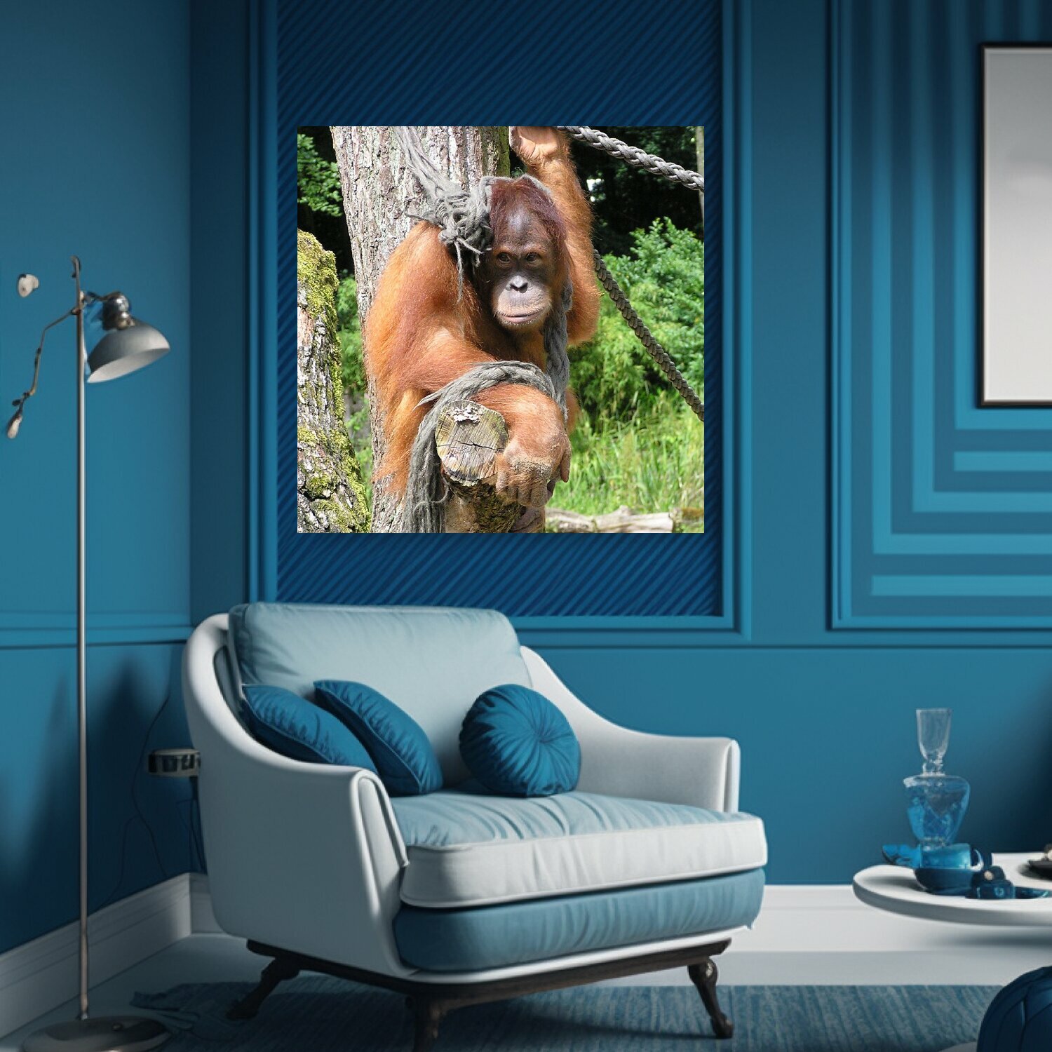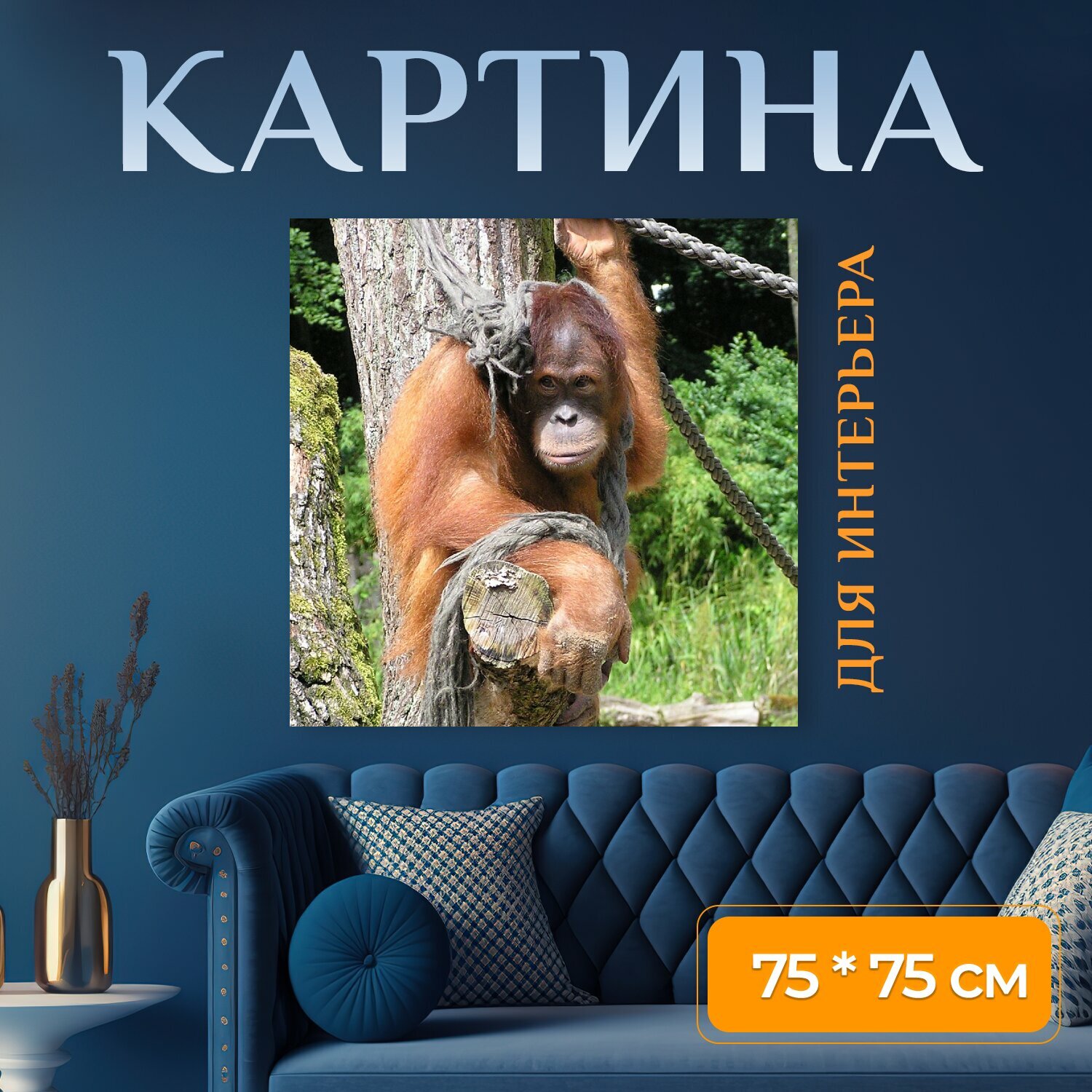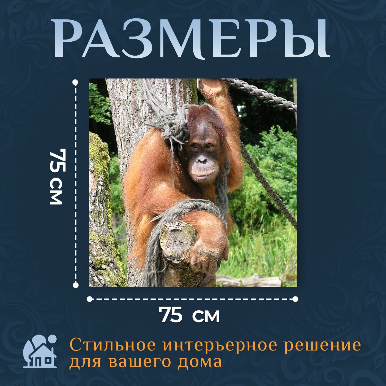 Картина на холсте "Обезьяна, оранг ютен, млекопитающее" на подрамнике 75х75 см. для интерьера интересное: