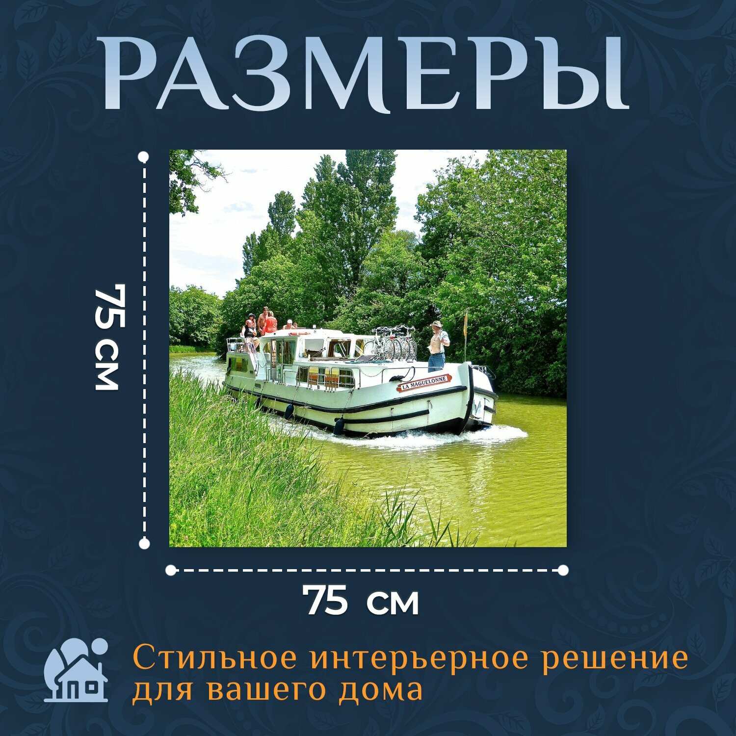 Купить Картина на холсте "Лодка, канал, отдых" на подрамнике 75х75 см. для интерьера