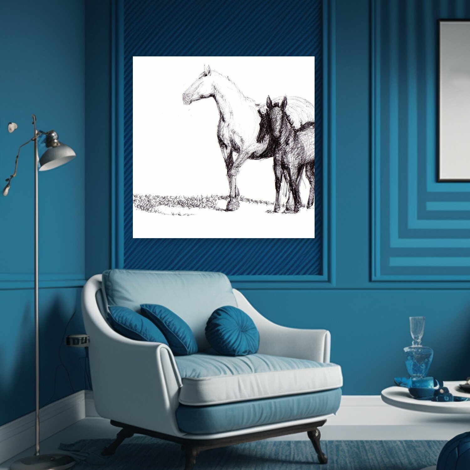 Картина на холсте "Лошадь, рисование, ручка" на подрамнике 75х75 см. для интерьера интересное: