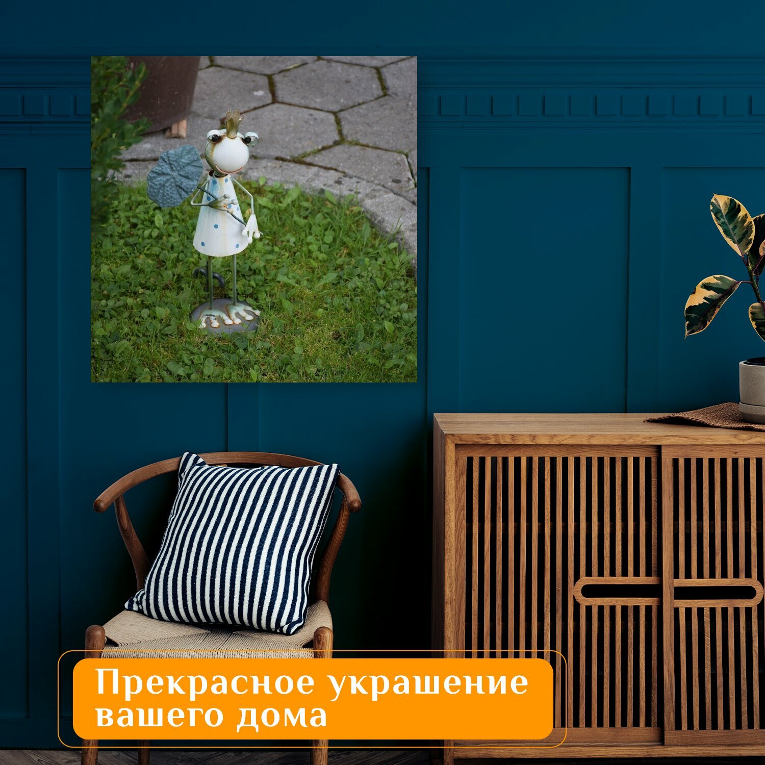 Картина на холсте "Сад, орнамент, лягушка" на подрамнике 75х75 см. для интерьера интересное:
