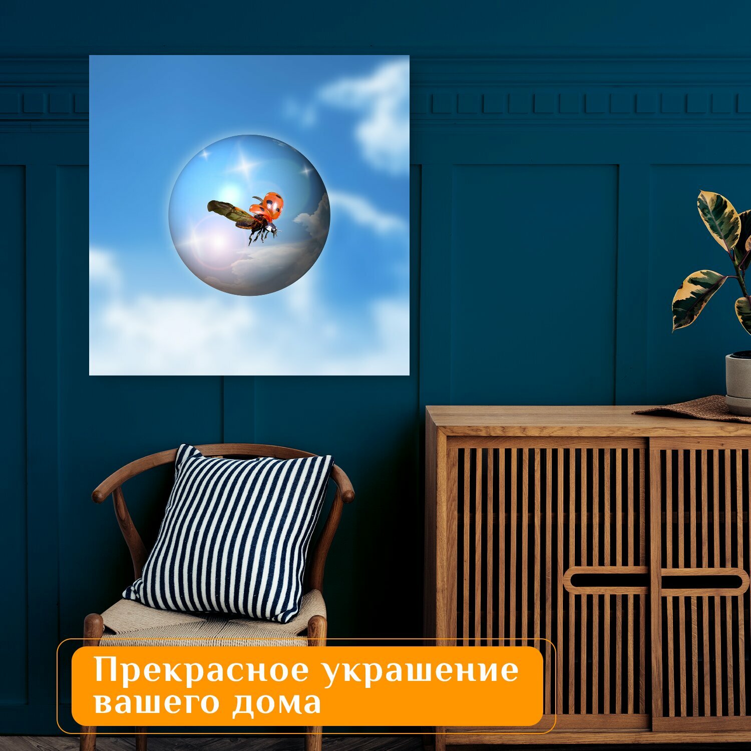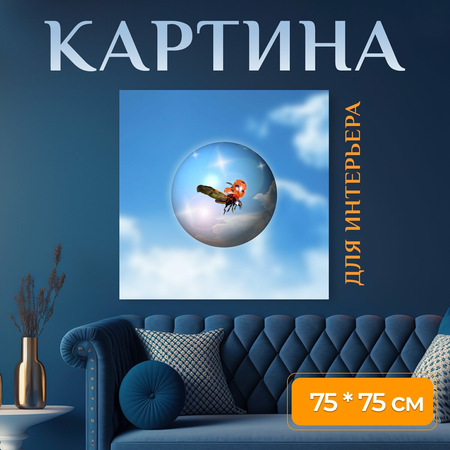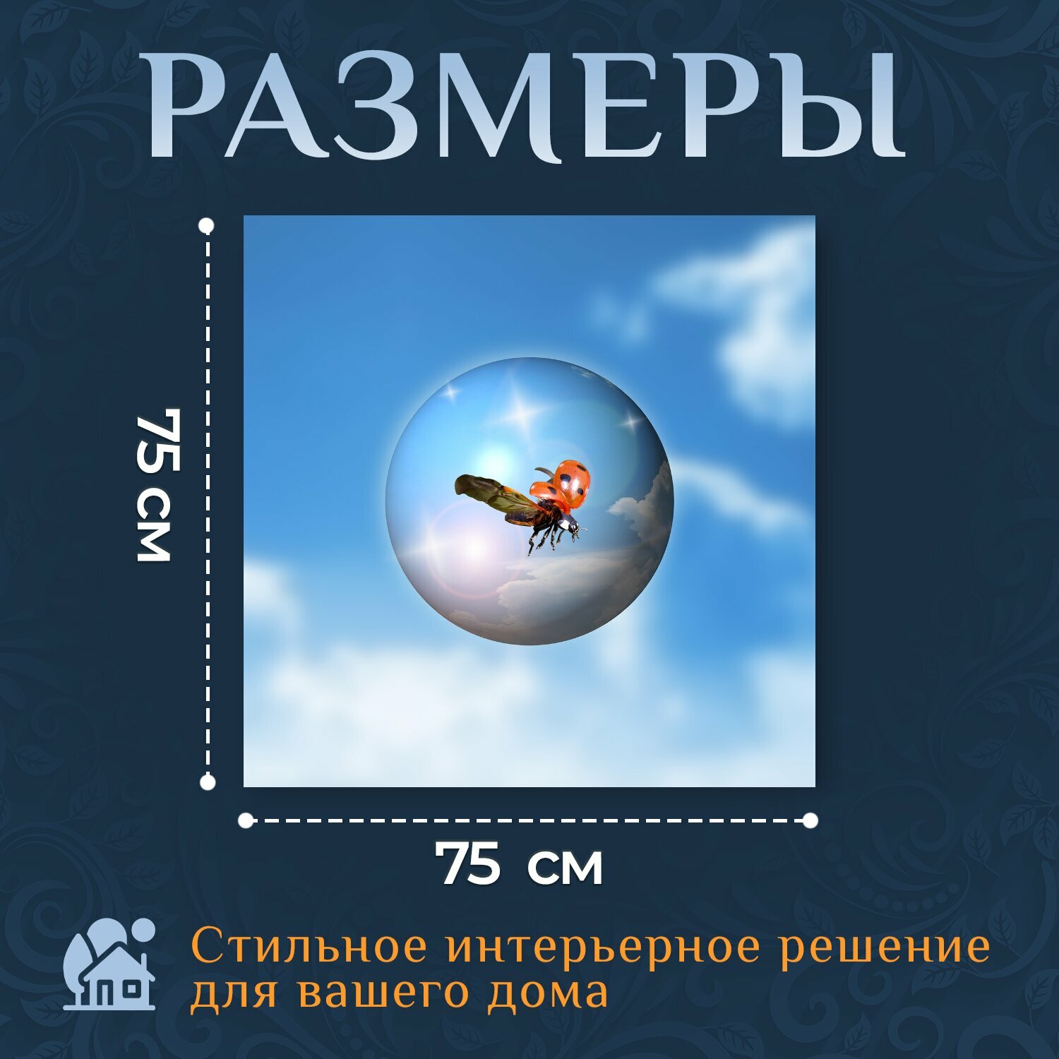 Купить Картина на холсте "Божья коровка, марийка коровка, жук" на подрамнике 75х75 см. для интерьера