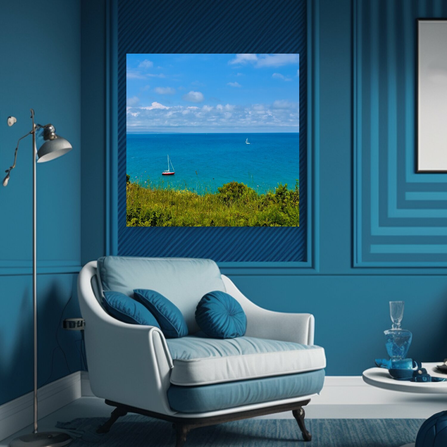 Картина на холсте "Лодки, море, парусная яхта" на подрамнике 75х75 см. для интерьера интересное: