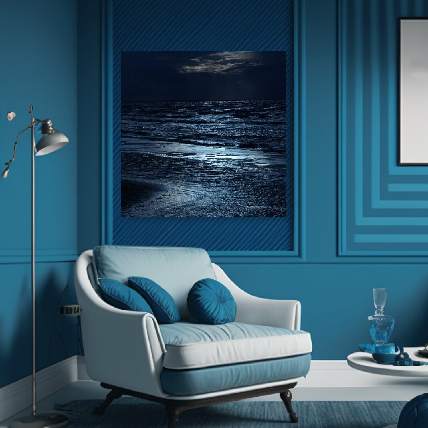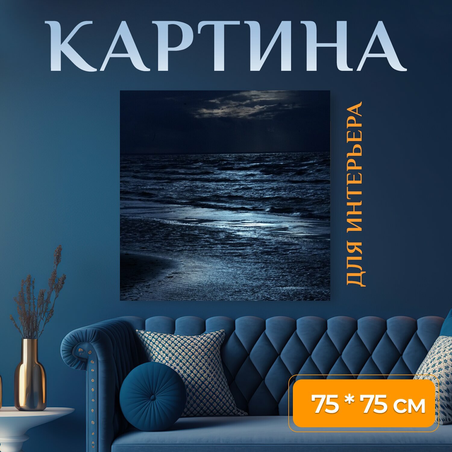 Картина на холсте "Море, облака, волны" на подрамнике 75х75 см. для интерьера интересное: