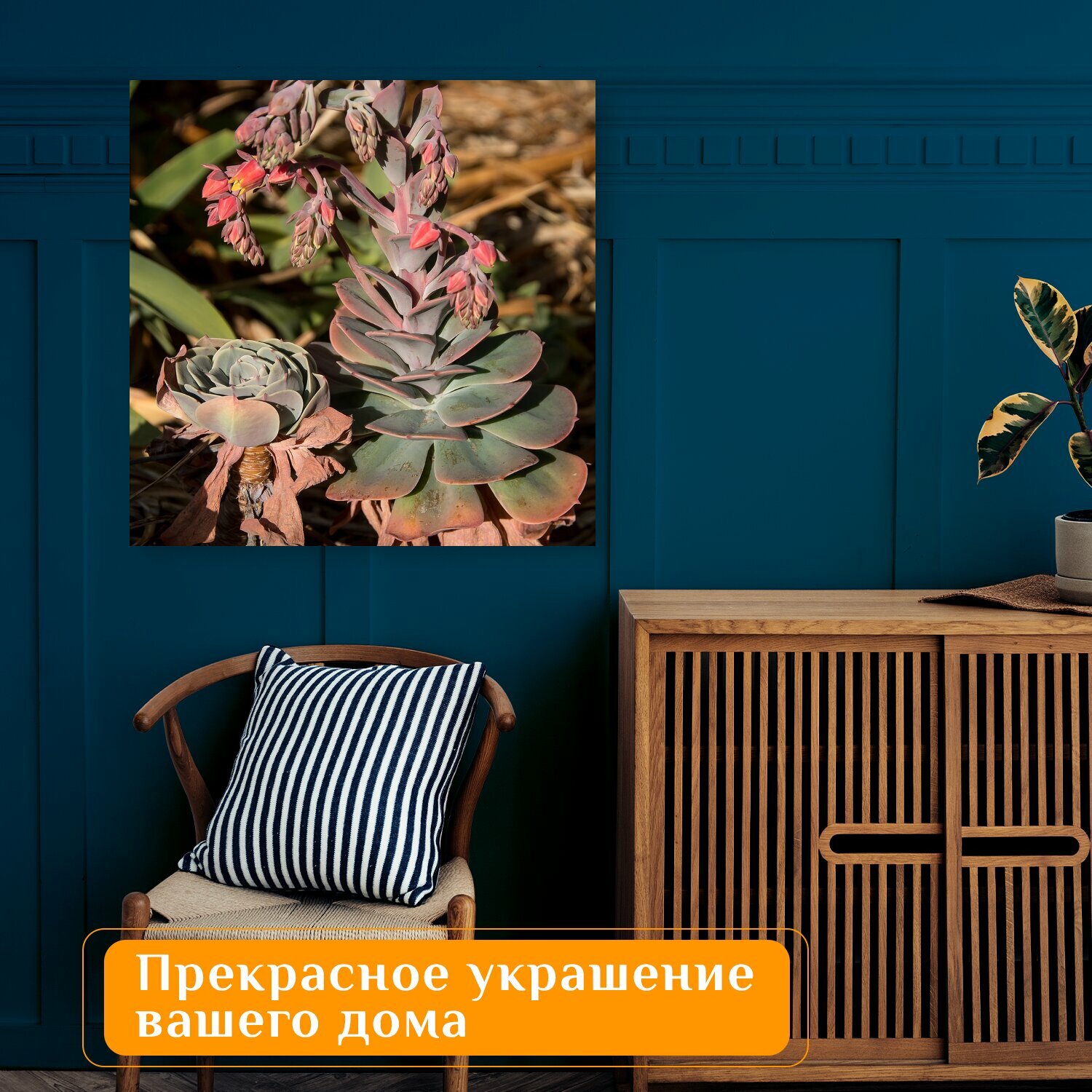 Картина на холсте "Суккуленты, зеленый, цветы" на подрамнике 75х75 см. для интерьера интересное:
