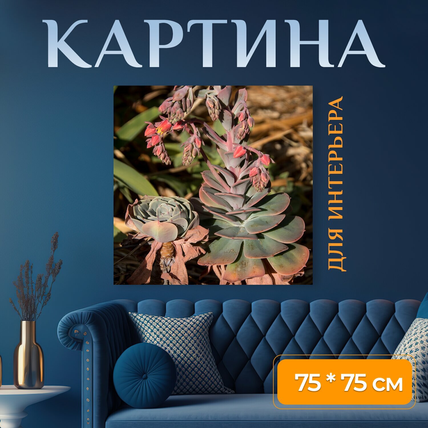 Купить Картина на холсте "Суккуленты, зеленый, цветы" на подрамнике 75х75 см. для интерьера