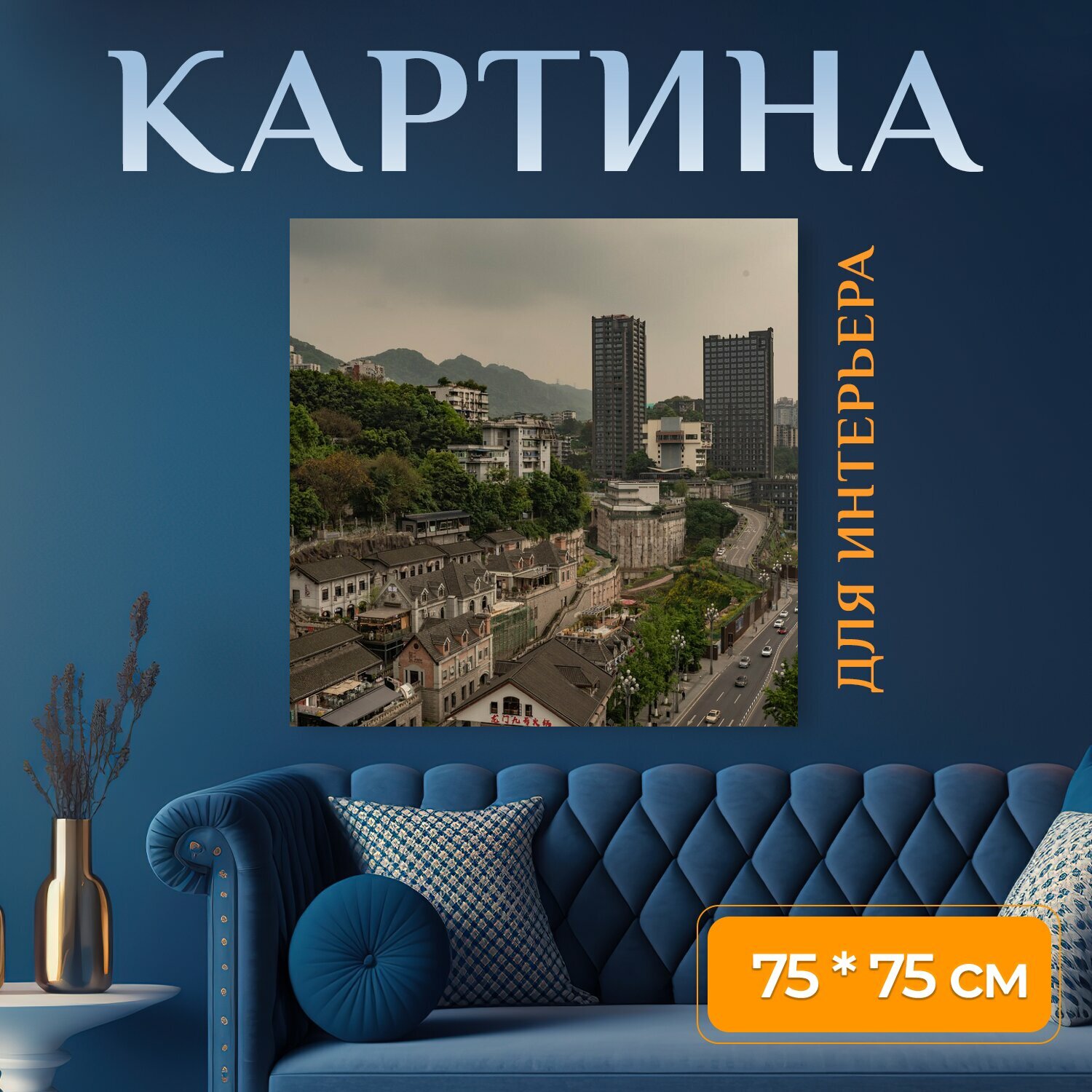 Картина на холсте "Гора, сити, просмотр улиц" на подрамнике 75х75 см. для интерьера интересное: