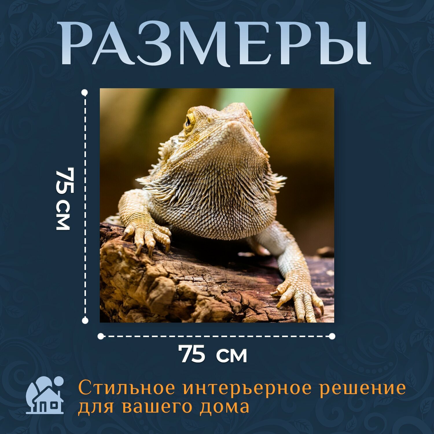 Картина на холсте "Ящерица, агаме, рептилия" на подрамнике 75х75 см. для интерьера интересное: