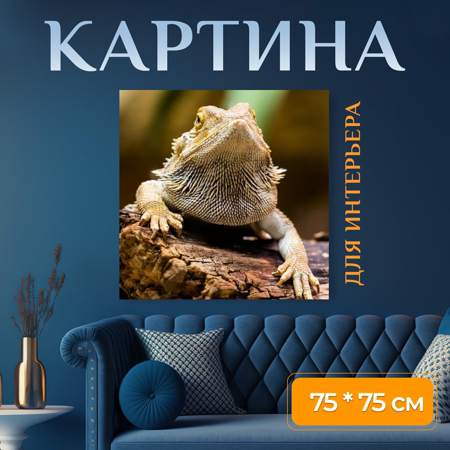 Купить Картина на холсте "Ящерица, агаме, рептилия" на подрамнике 75х75 см. для интерьера