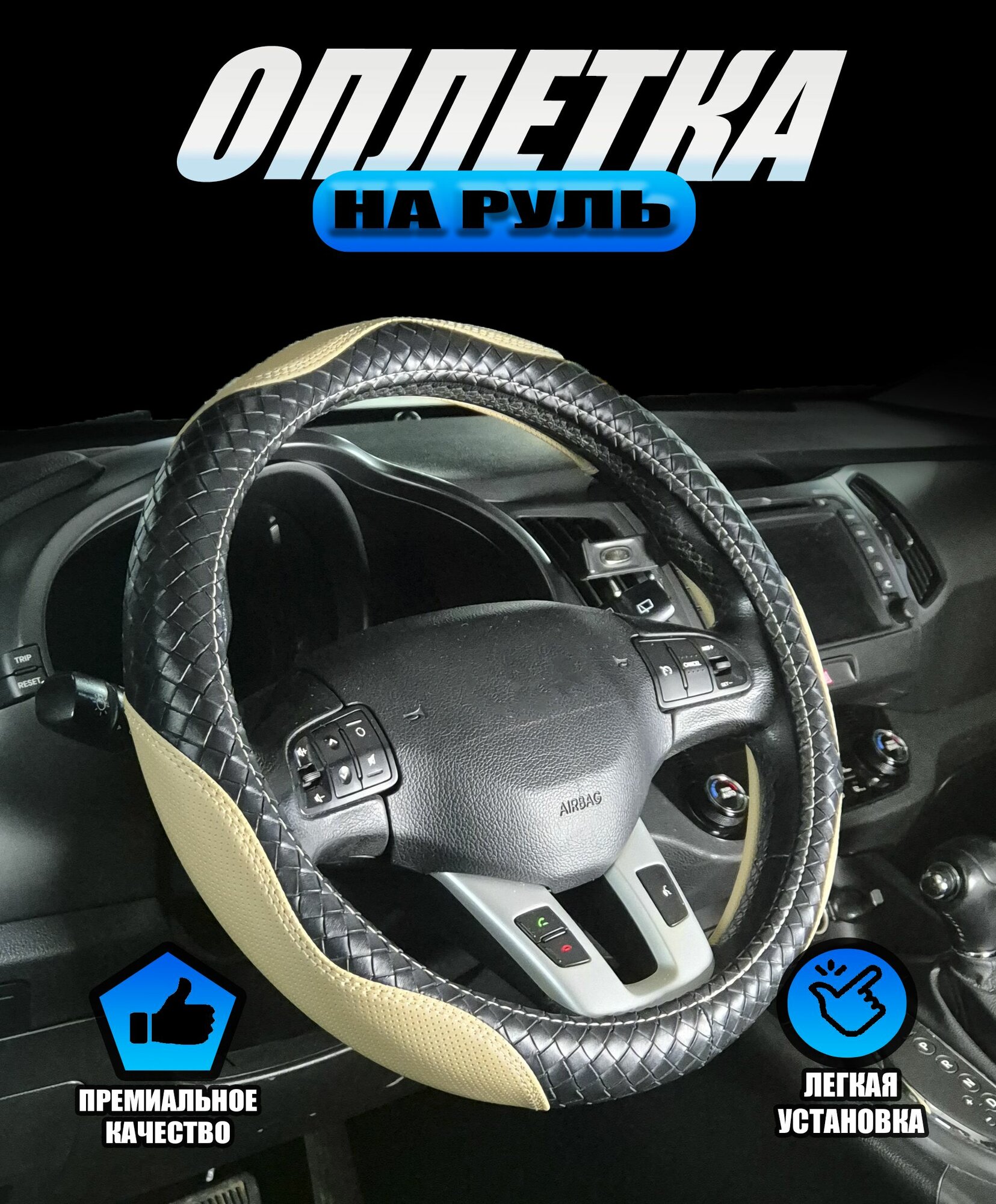 Оплетка, чехол (накидка) на руль Митсубиси Делика Д:3 (2011 - 2019) минивэн / Mitsubishi Delica D:3, экокожа, Черный и бежевый интересное: