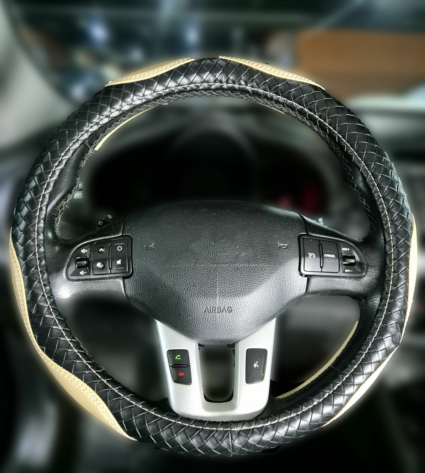 Оплетка, чехол (накидка) на руль Пежо Партнер (1997 - 2002) фургон / Peugeot Partner, экокожа, Черный и бежевый интересное: