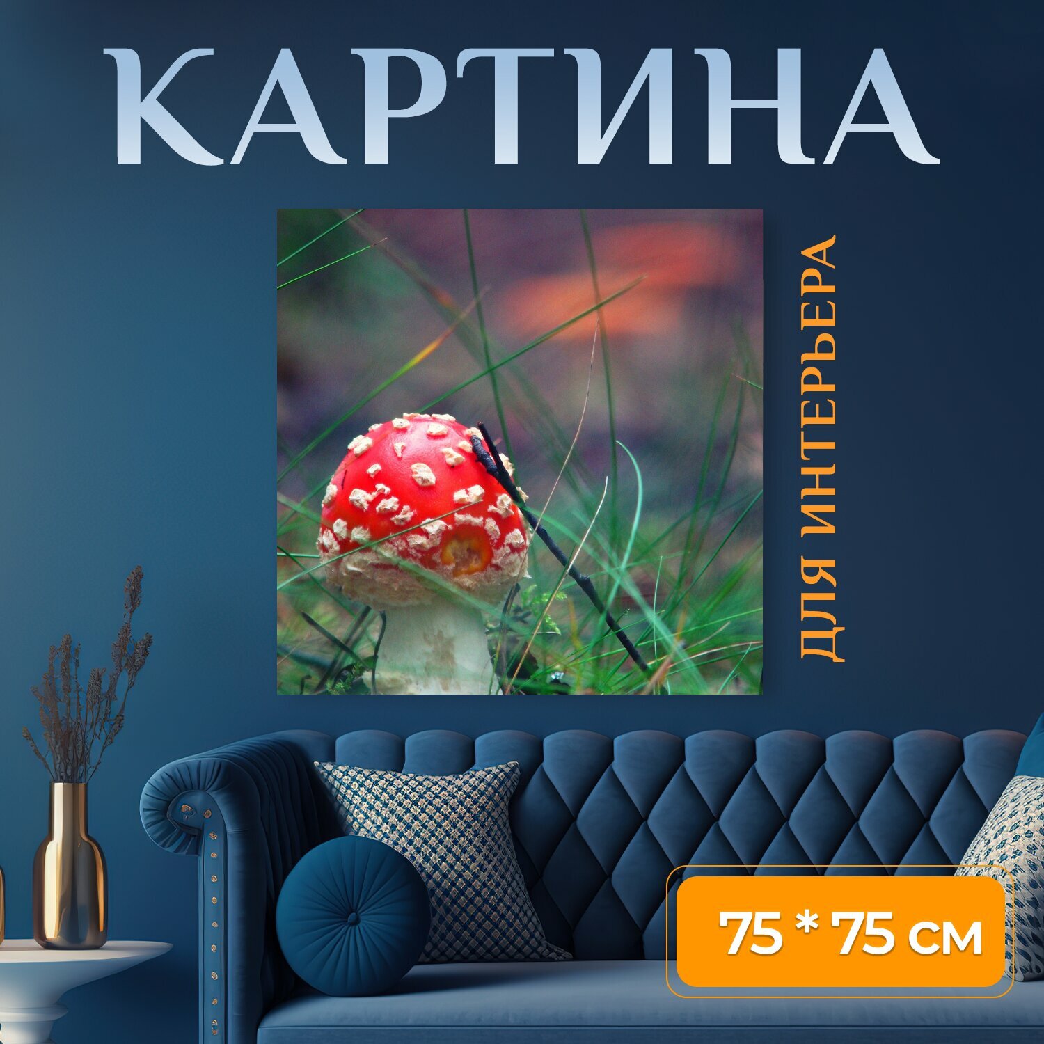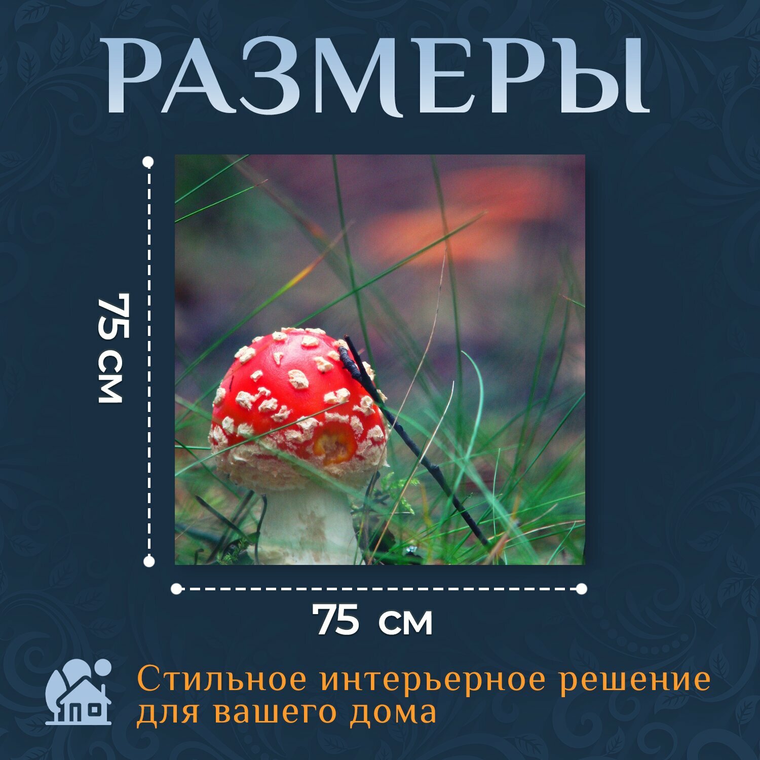 Картина на холсте "Поганка, гриб, лес" на подрамнике 75х75 см. для интерьера интересное:
