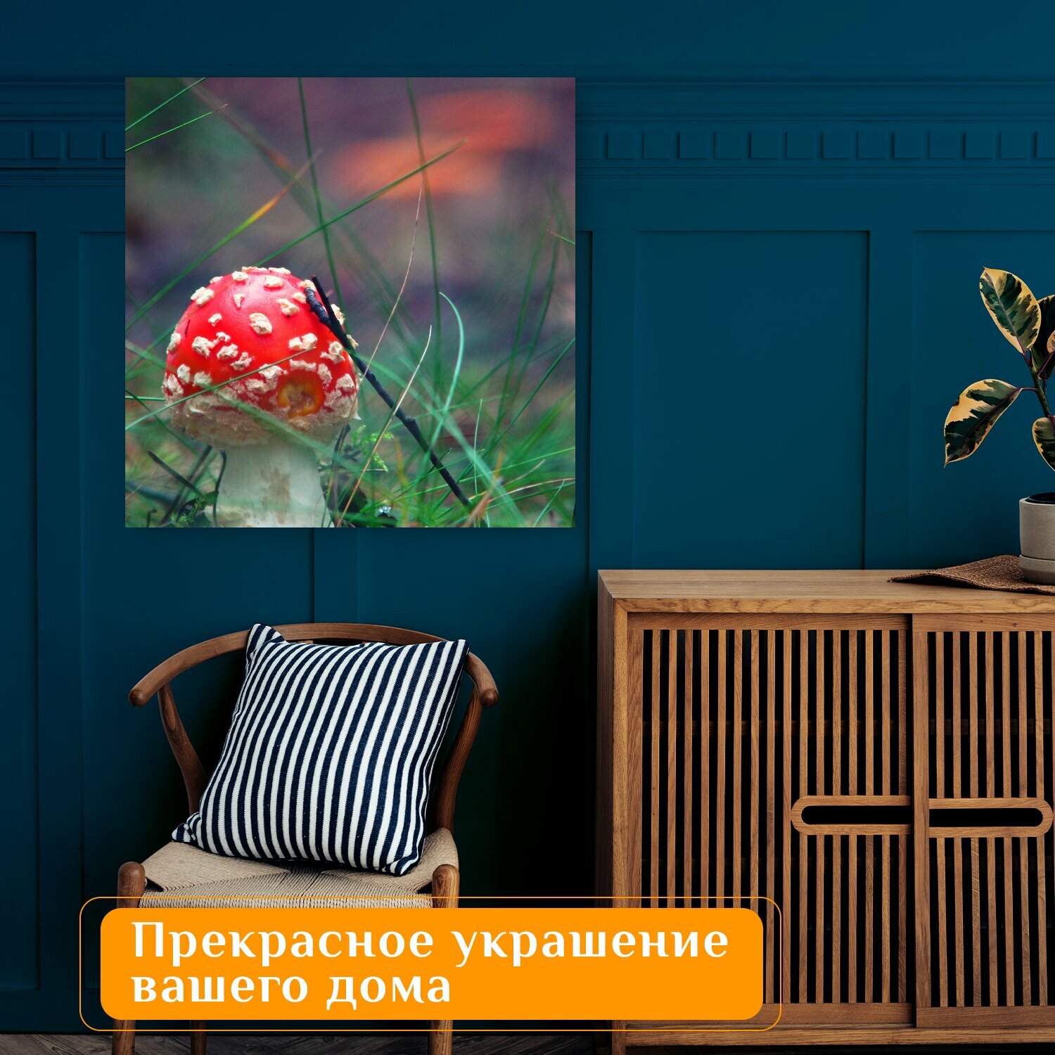 Купить Картина на холсте "Поганка, гриб, лес" на подрамнике 75х75 см. для интерьера