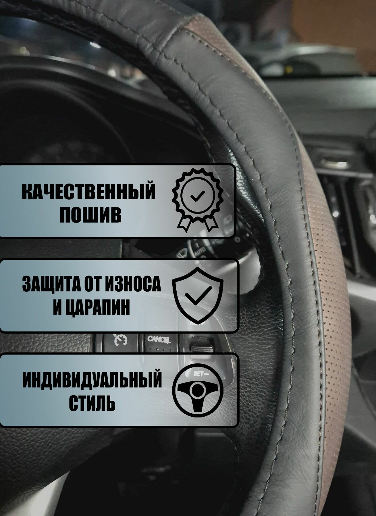 Оплетка, чехол (накидка) на руль Ленд Ровер Рендж Ровер Эвок (2015 - 2018) внедорожник 5 дверей / Land Rover Range Rover Evoque, натуральная кожа, Черный и шоколадный интересное: