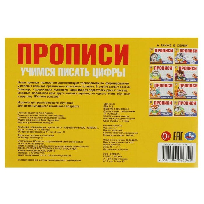 Ниже Вы можете прочитать отзывы на Прописи «Учимся писать цифры», ознакомится с подробными характеристиками, посмотреть интересные обзоры и фотографии на Прописи «Учимся писать цифры».