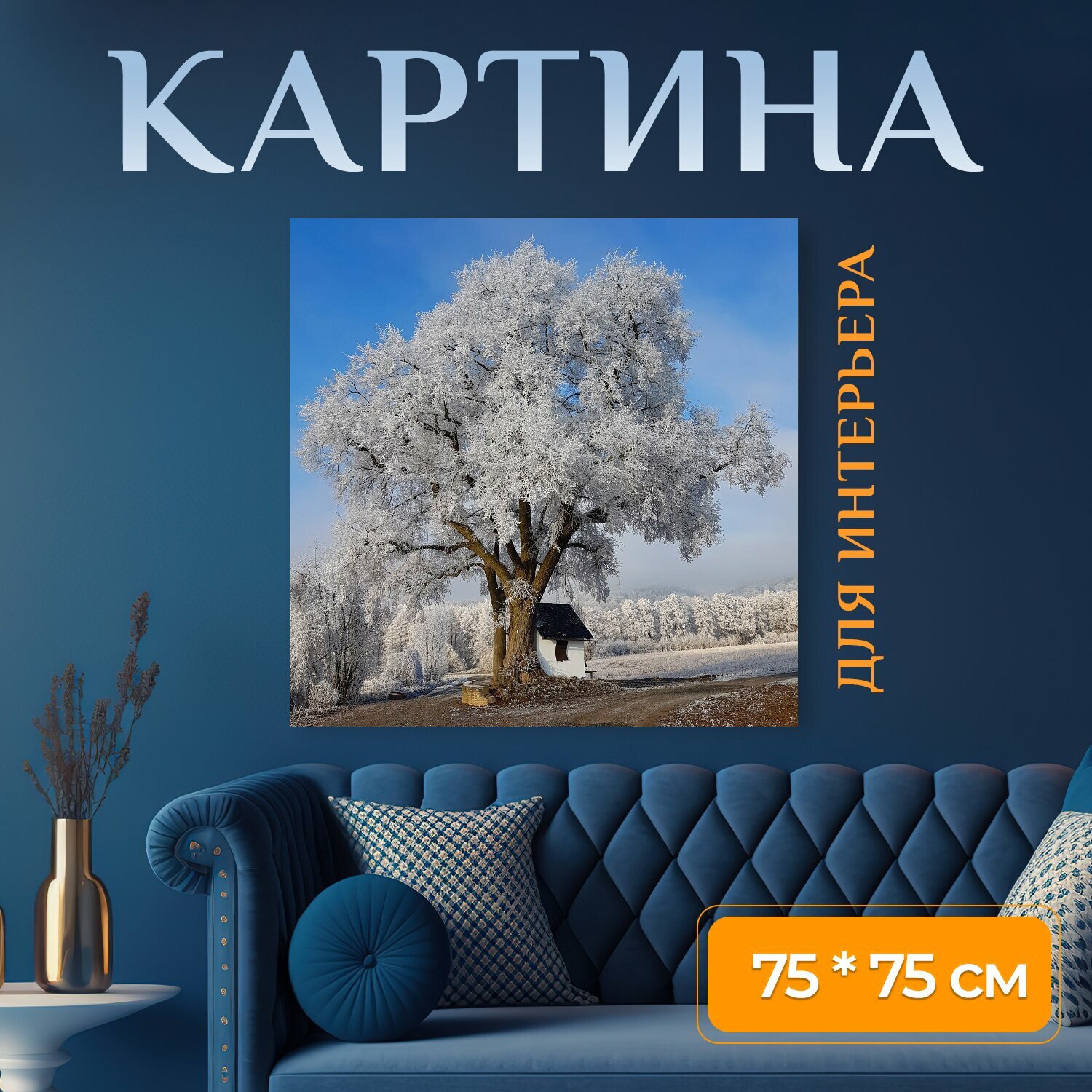 Купить Картина на холсте "Зима, снег, зимний" на подрамнике 75х75 см. для интерьера
