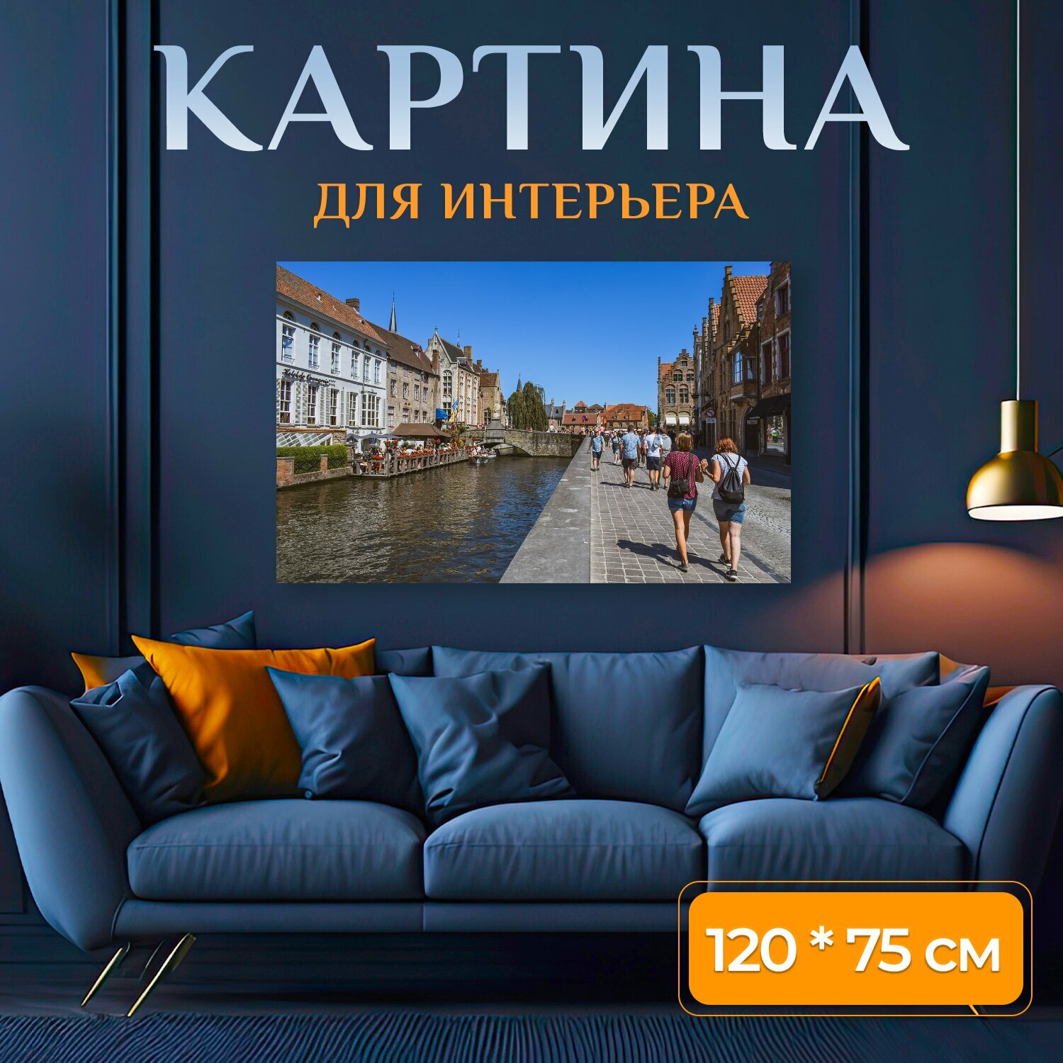 Купить Картина на холсте "Бельгия, брюгге, канал" на подрамнике 120х75 см. для интерьера