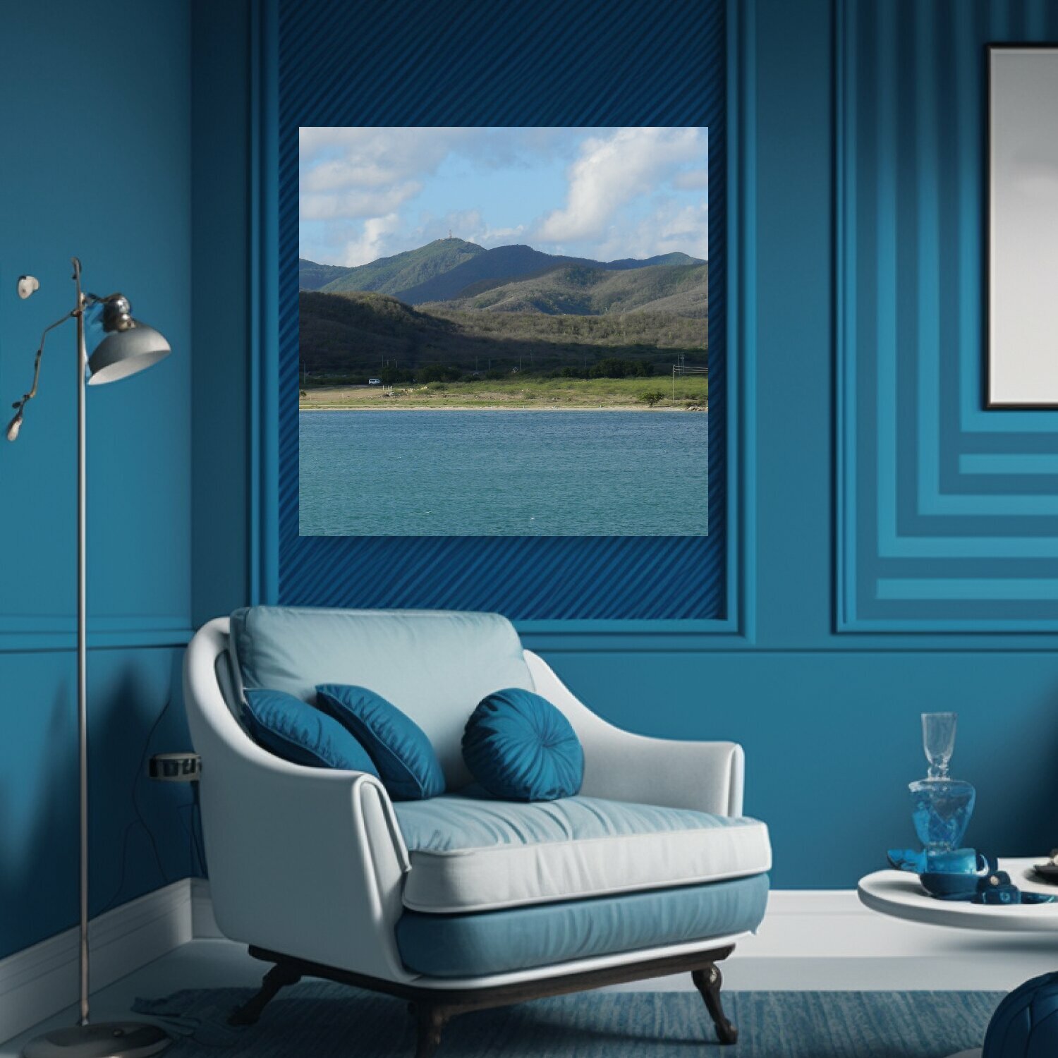 Купить Картина на холсте "Гора, вода, океан" на подрамнике 75х75 см. для интерьера