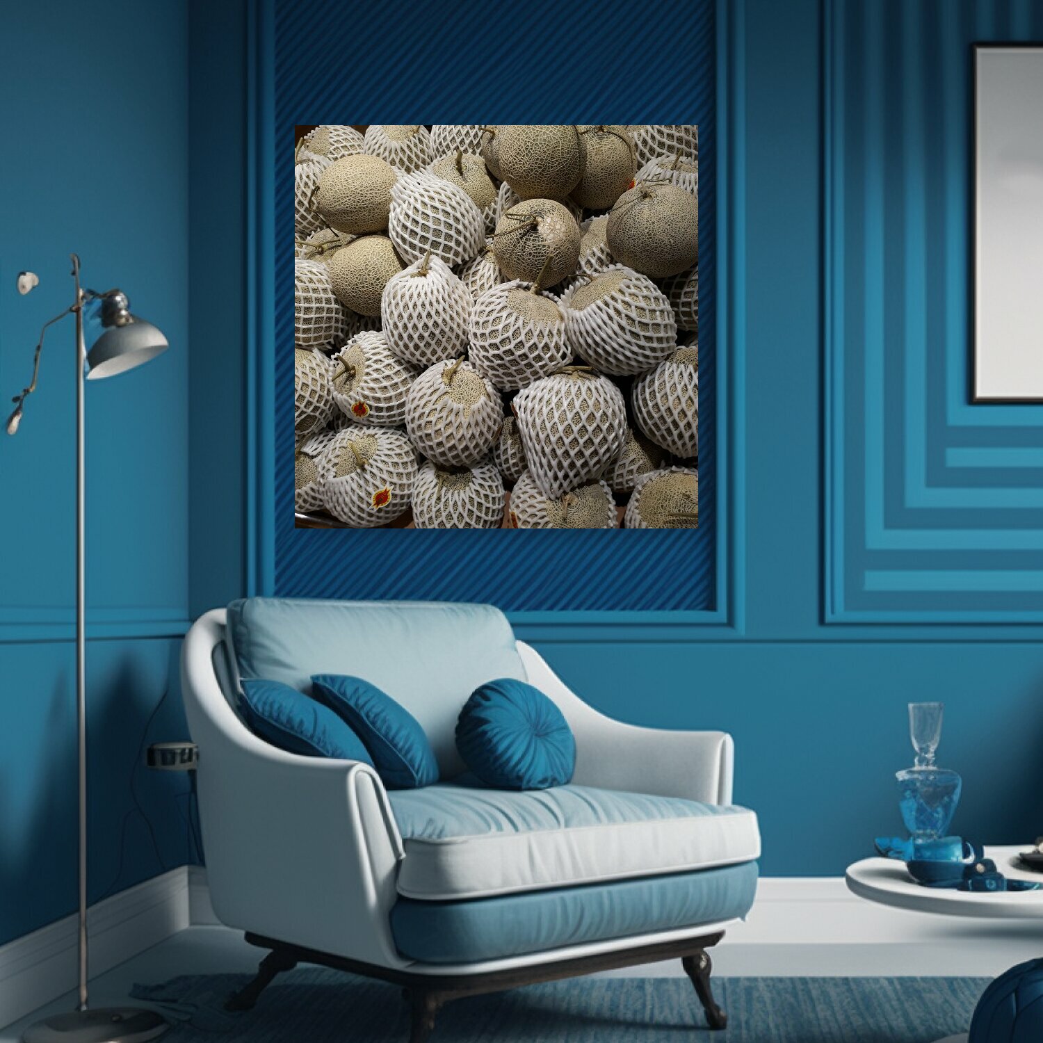 Картина на холсте "Дыня, тропический фрукт, разрешение запор" на подрамнике 75х75 см. для интерьера интересное: