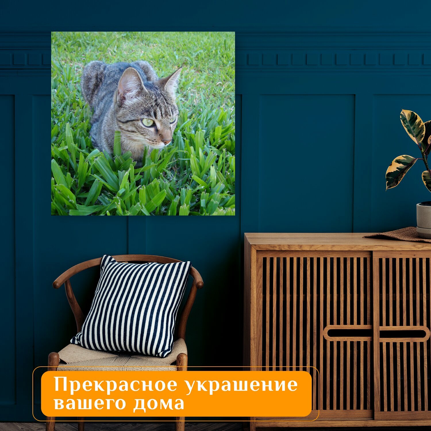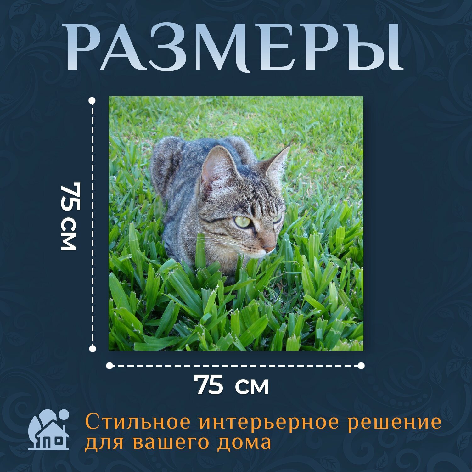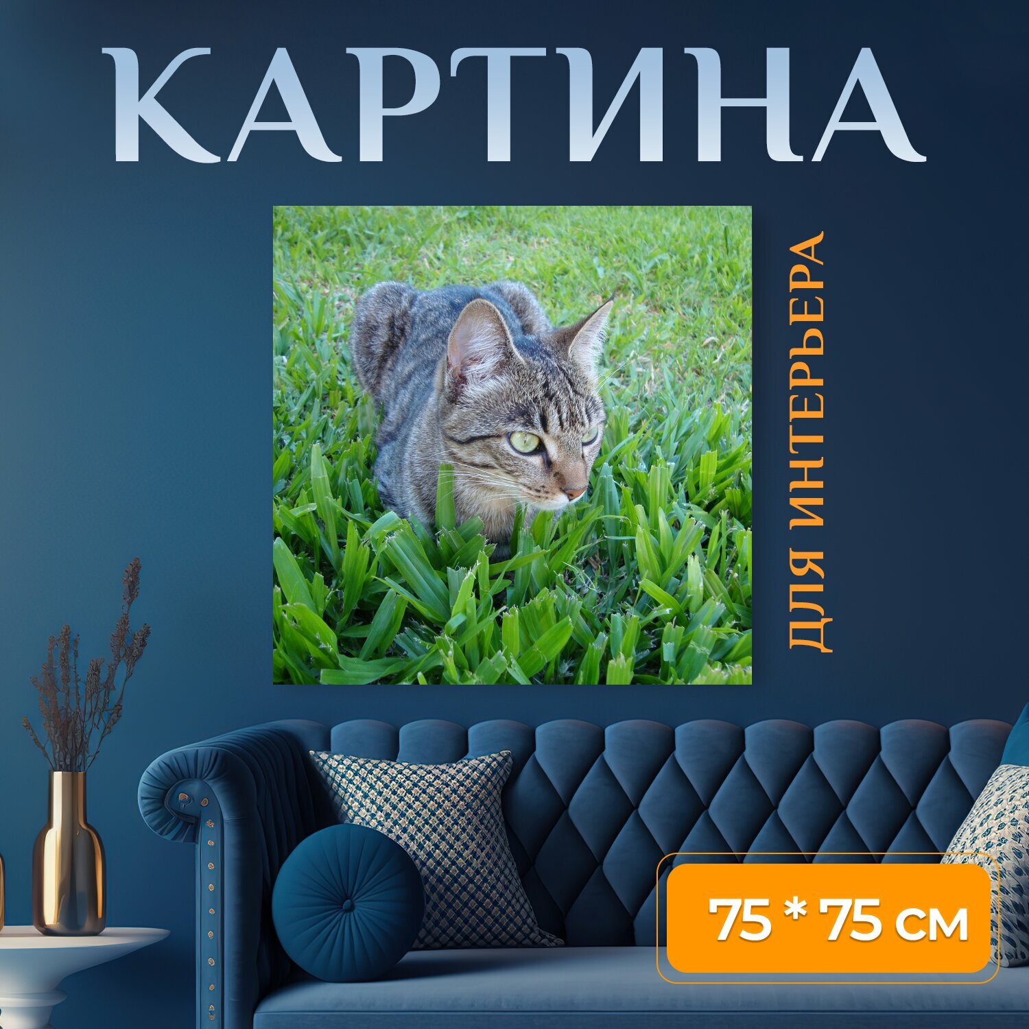 Купить Картина на холсте "Кошка, трава, привлекательность" на подрамнике 75х75 см. для интерьера