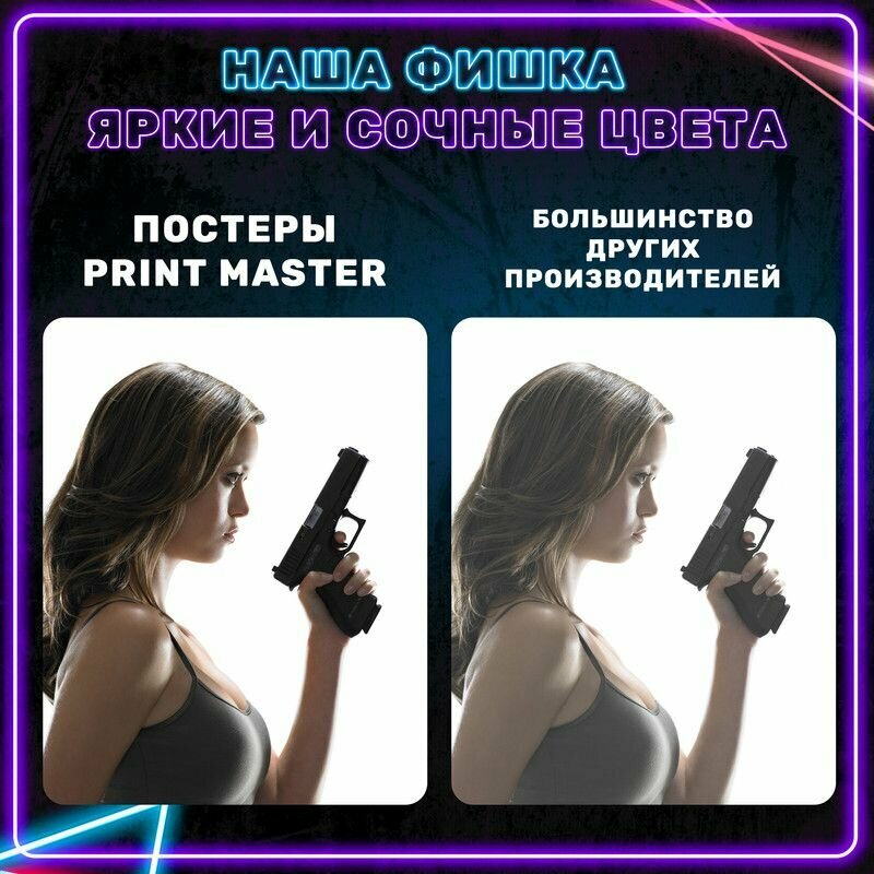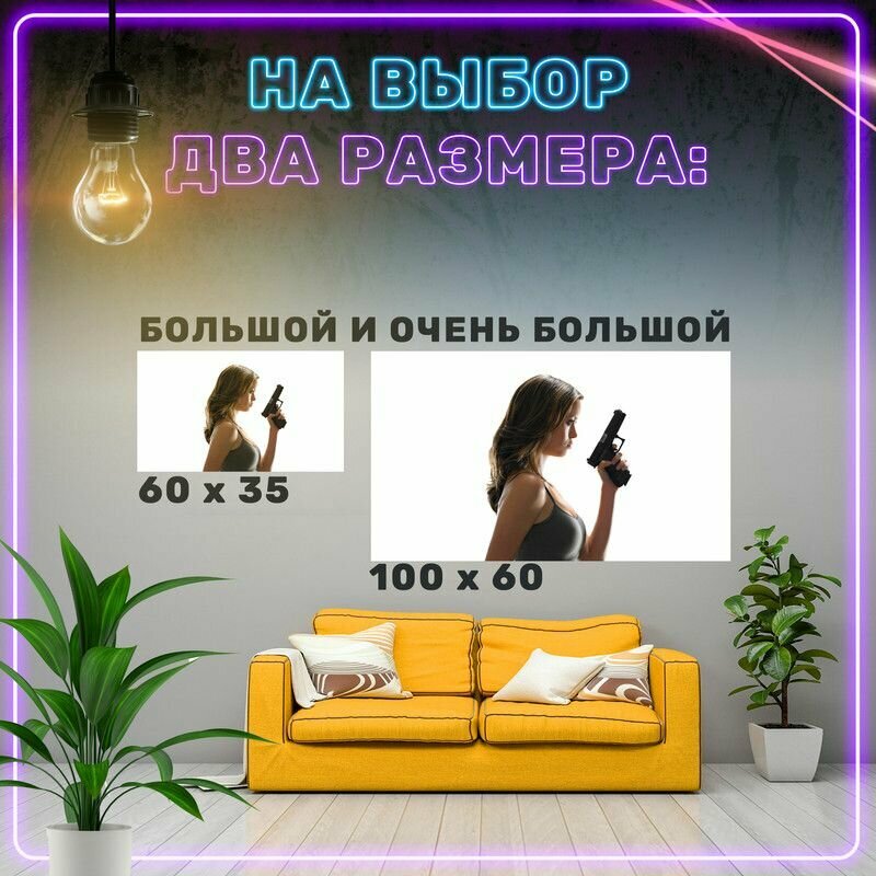 Постер на стену Девушка с пистолетом 100х60 см интересное: