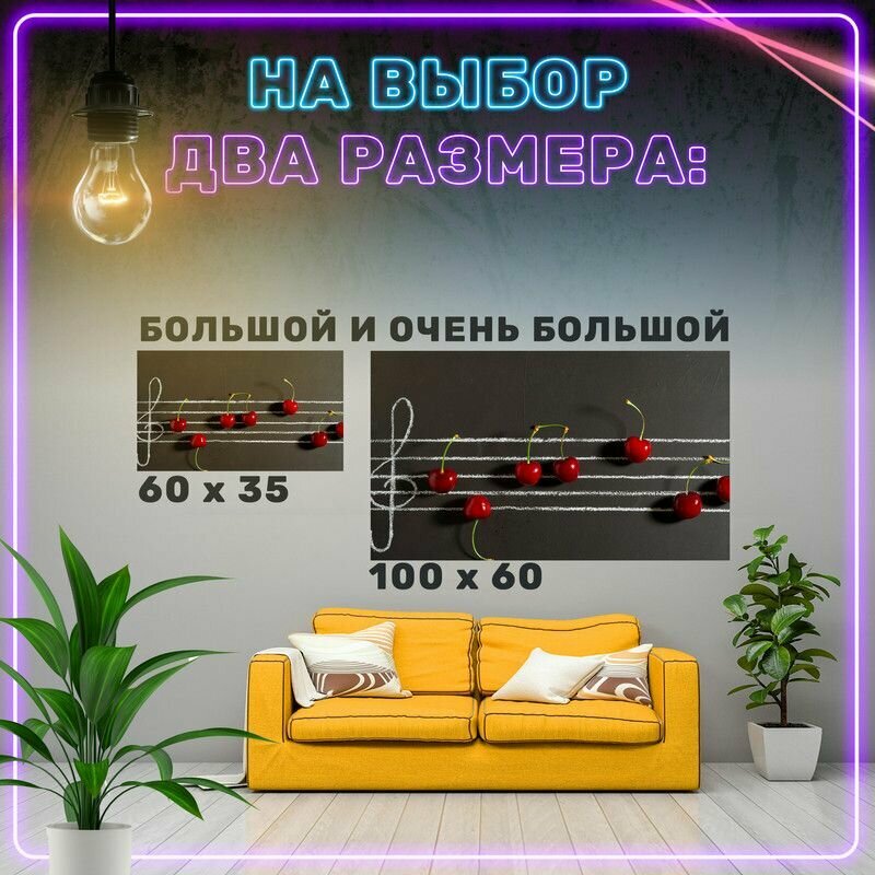 Постер на стену Вишневые ноты 60х35 см интересное: